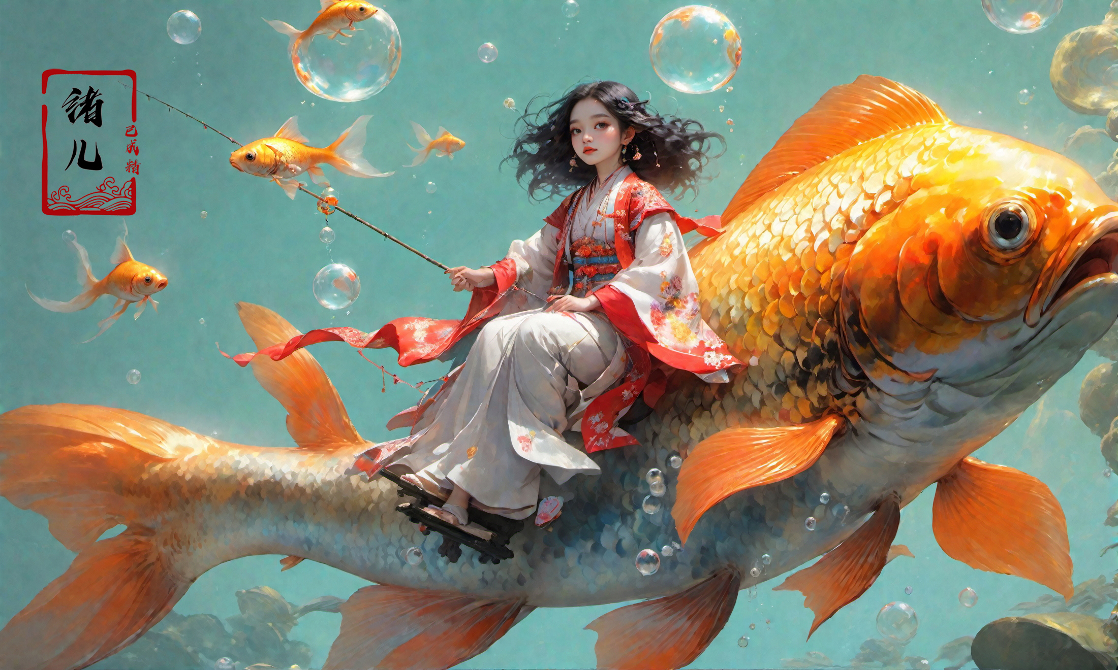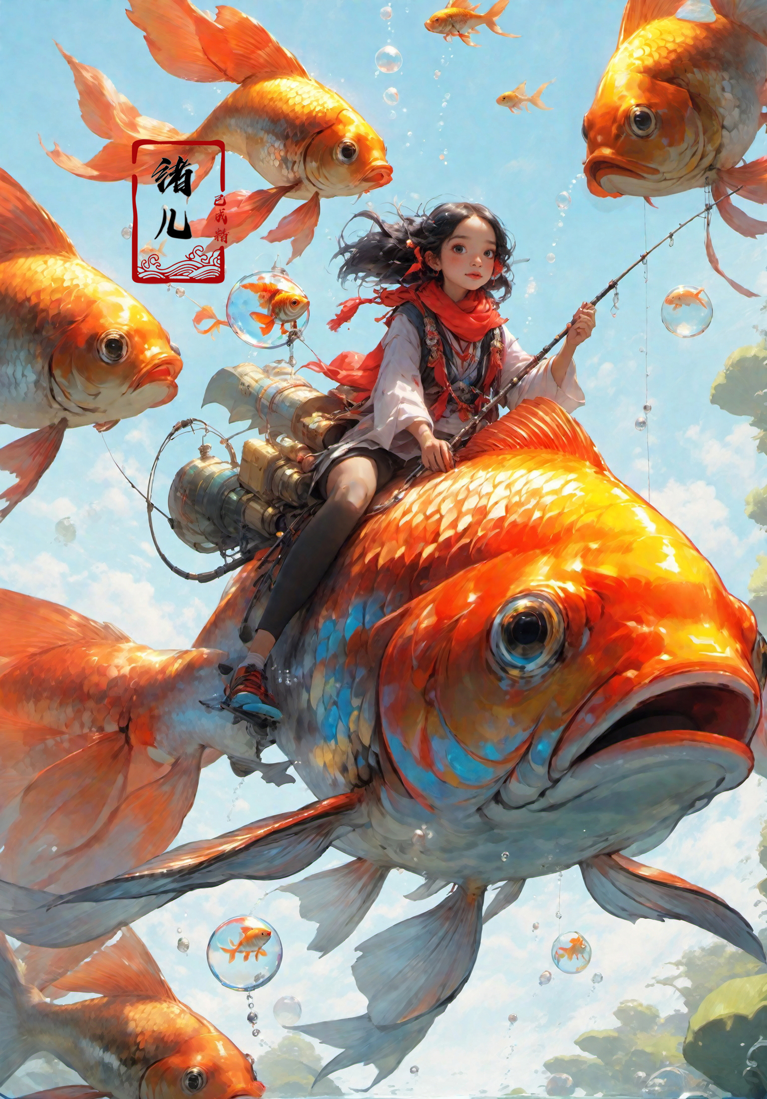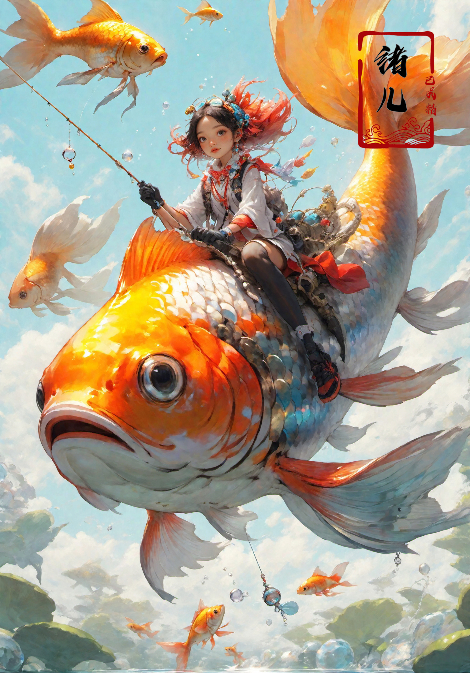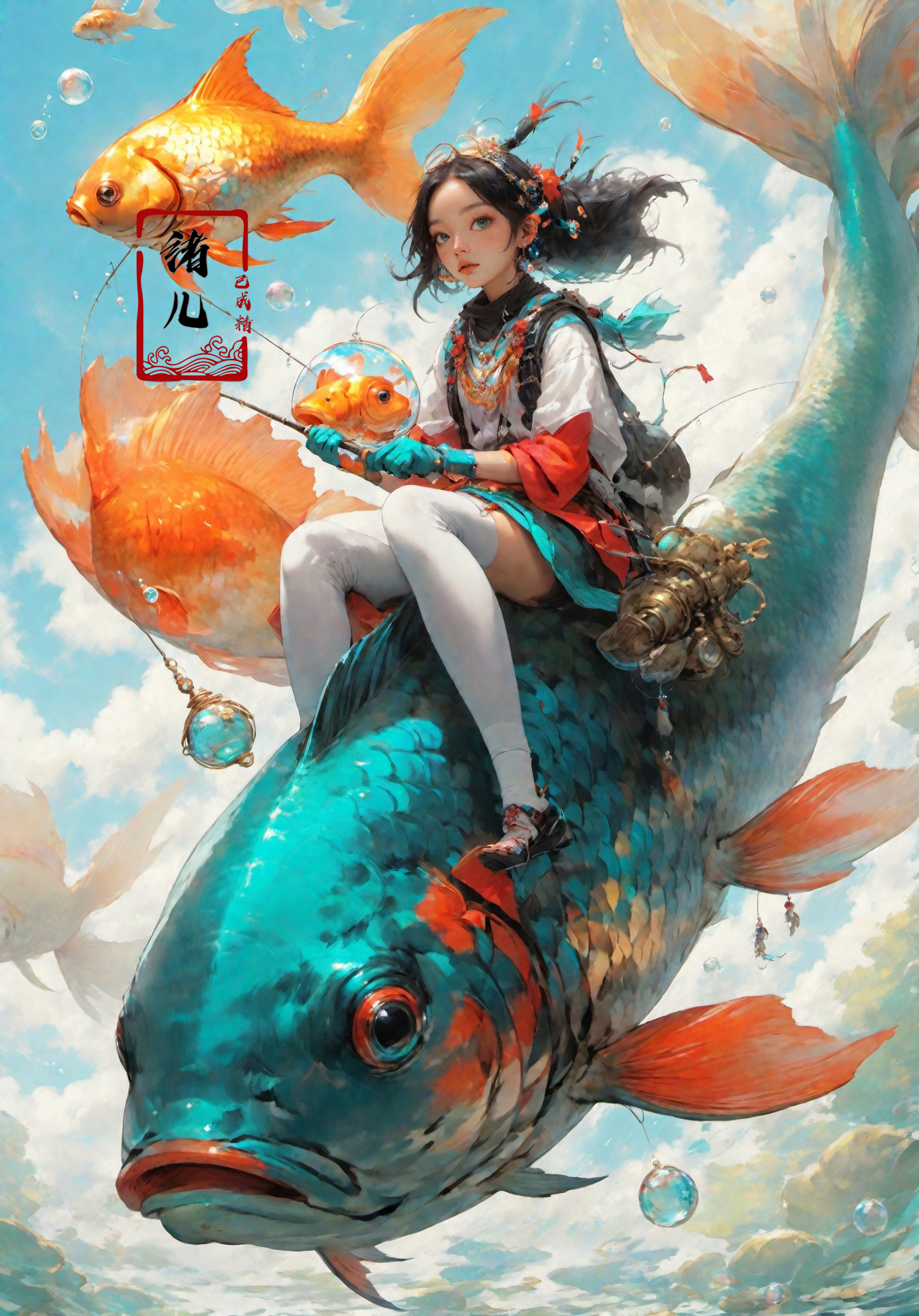 这是个XL版lora.。提供骑大鱼的构图和画风。