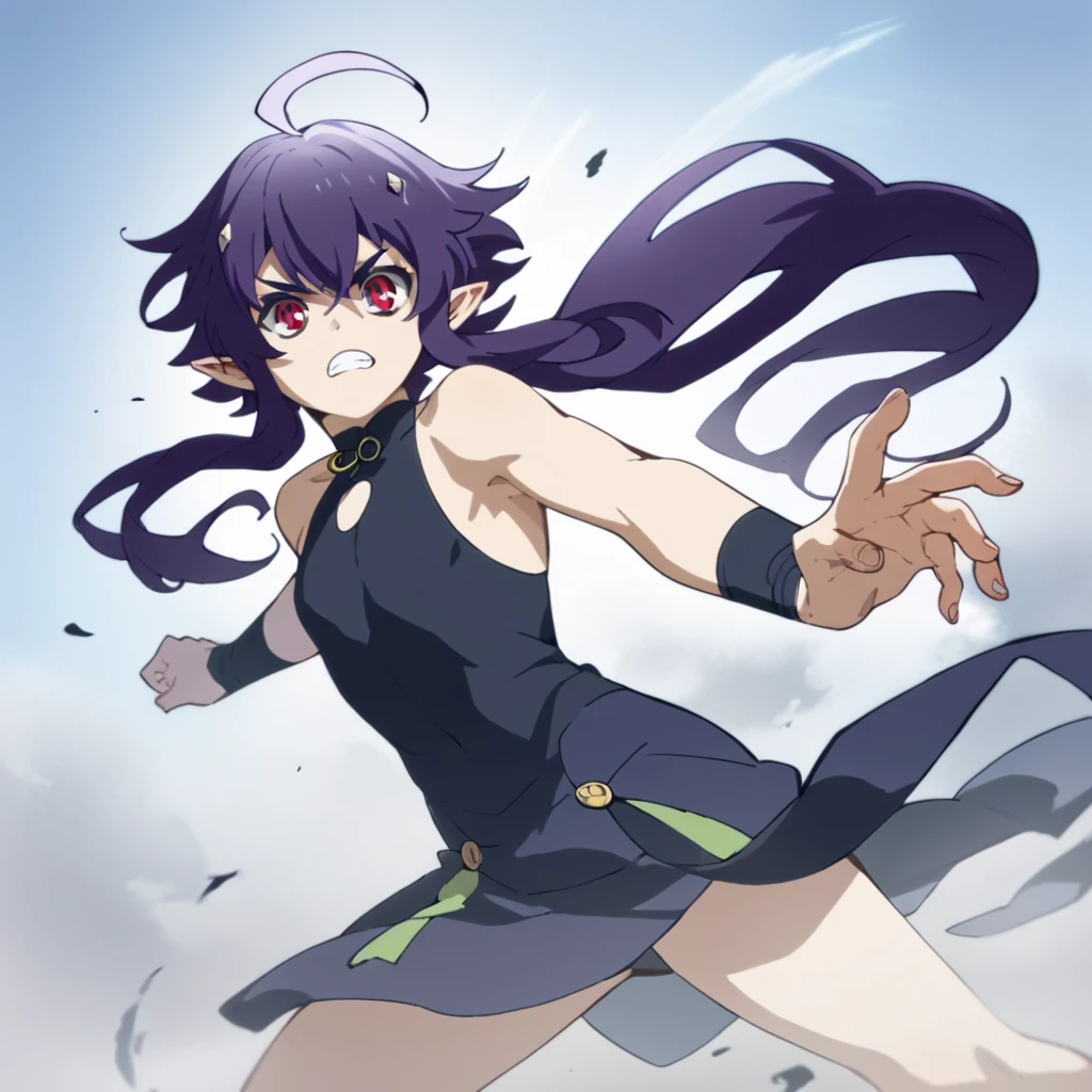 Asuramaru, long hair, red eyes, purple hair, ahoge, pointy ears,
