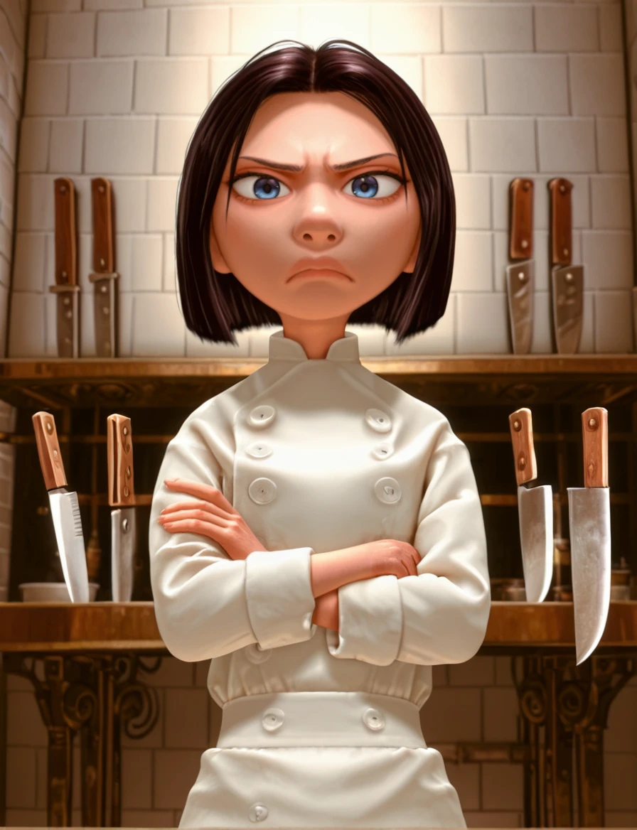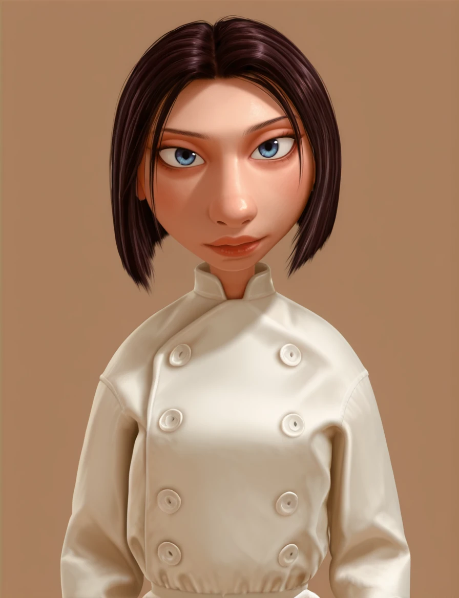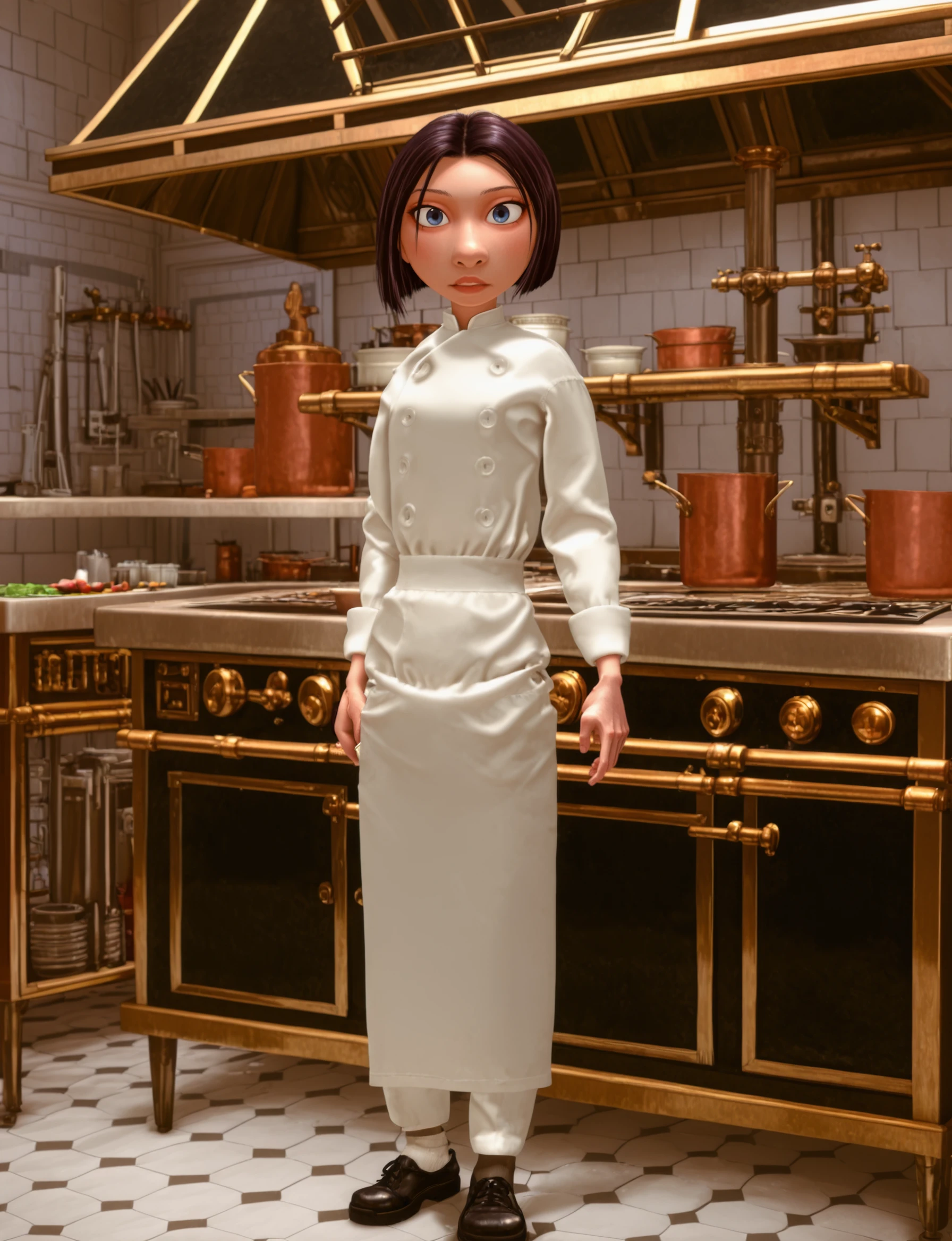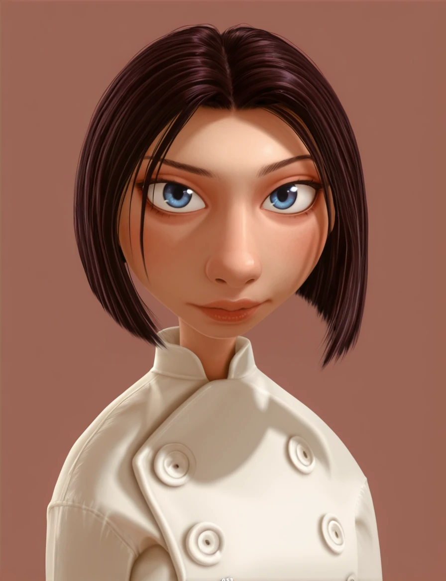 colette, 1girl, short hair, black hair, chef, blue eyes