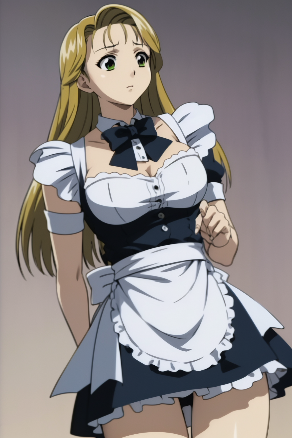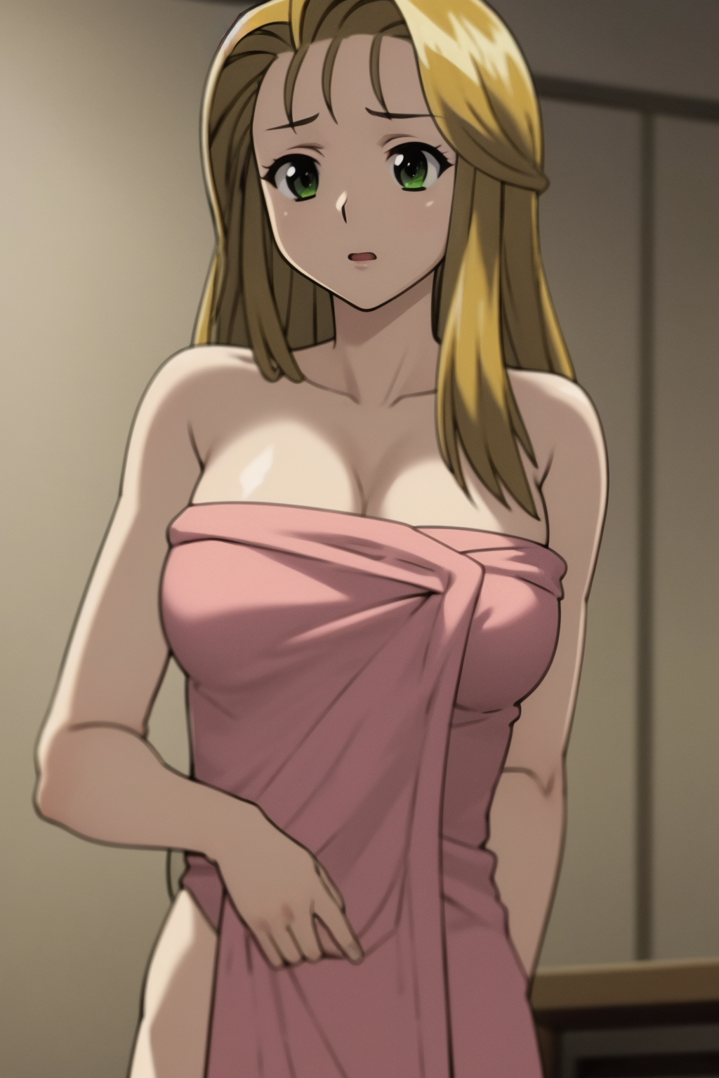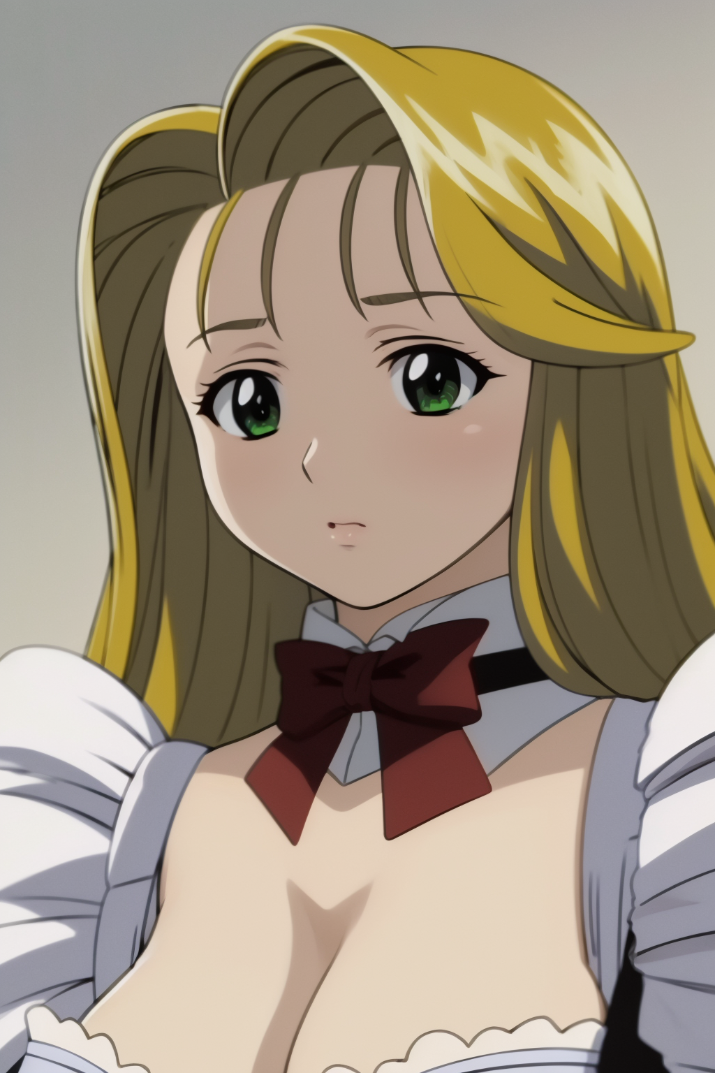 Basic prompts : blonde hair, long hair, green eyes, huge breasts, cleavage