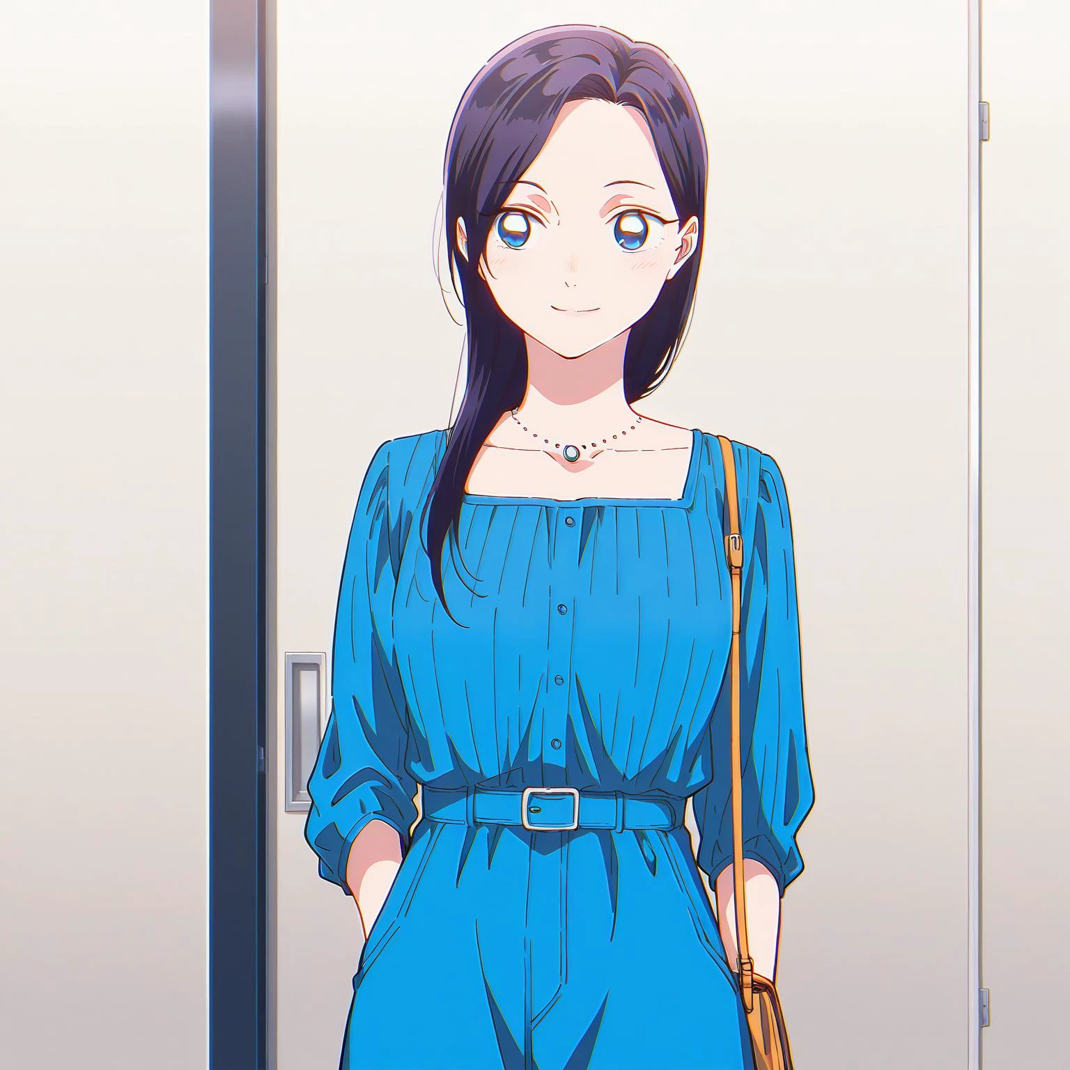 Prompt:,karen_moriya,long_hair,blue eyes,smile
