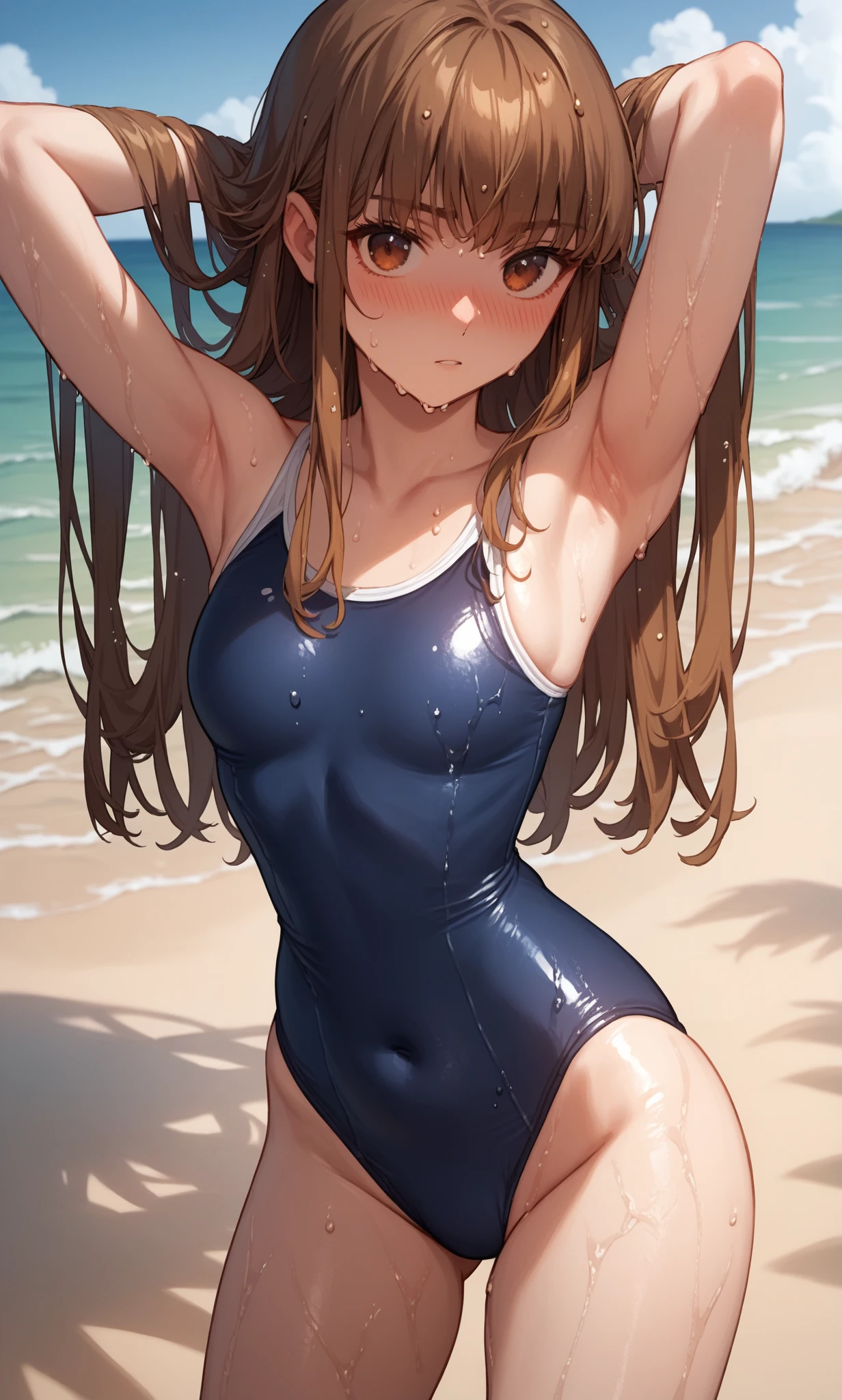 hakuno kishinami, brown eyes, brown hair, long hair, bangs