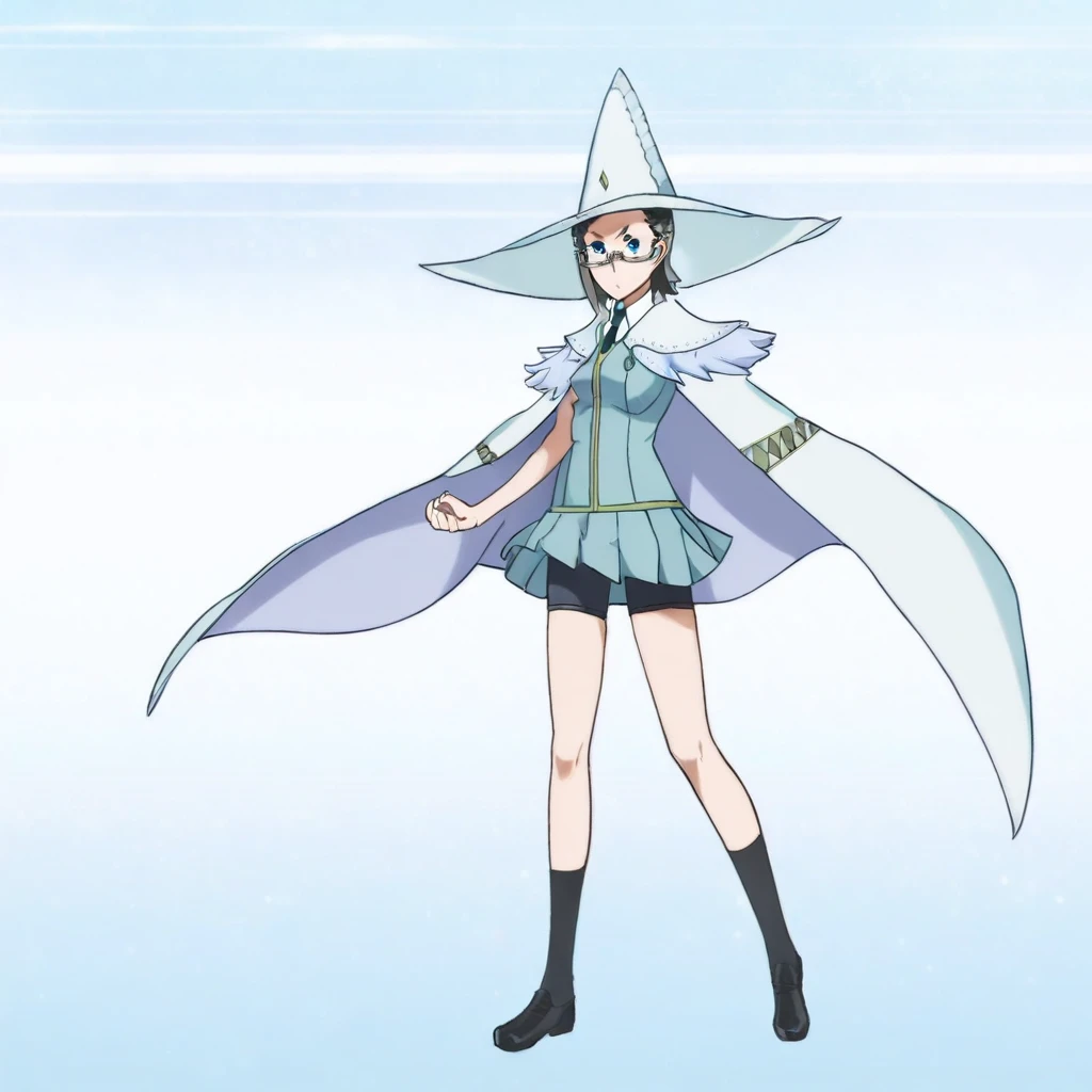 Witch outfit: kotetsu witch (outfit), witch hat, pleated skirt, cape, bike shorts, school uniform, necktie, shorts under skirt, black socks, black footwear,