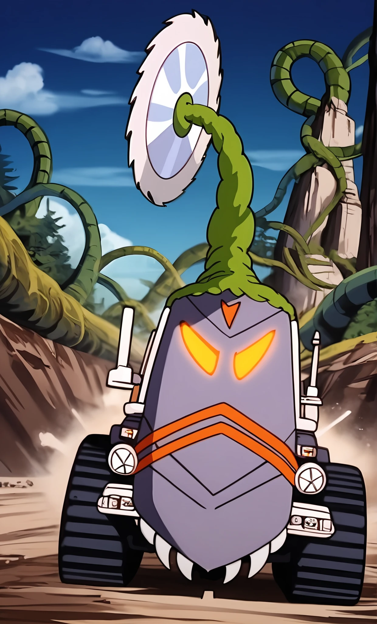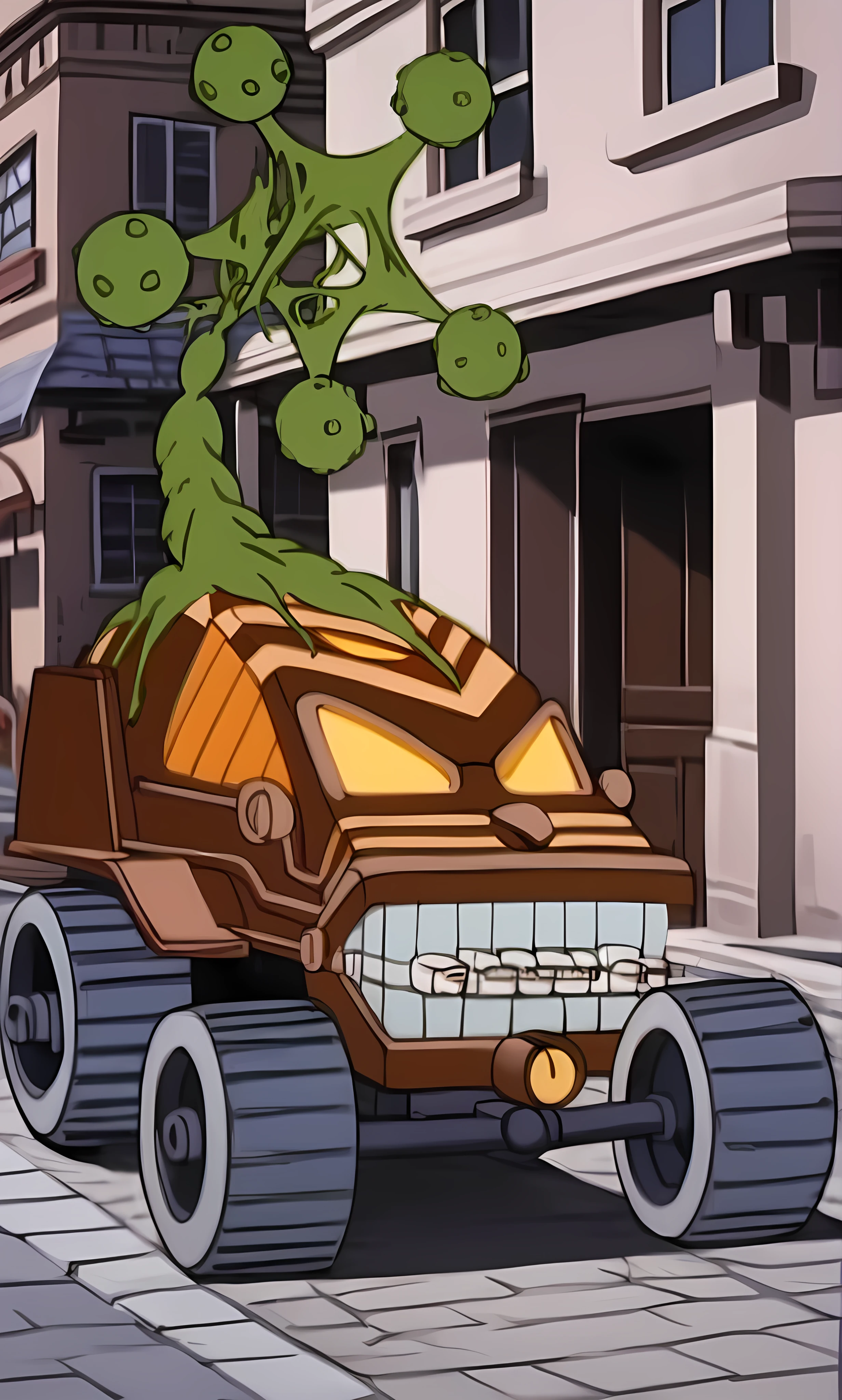 The experiment however goes wrong, and Sawboss is created and his ever growing vines