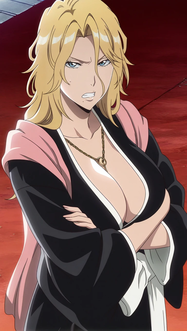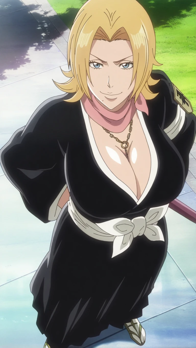 rangiku matsumoto, blonde hair, long hair, bangs, blue eyes, mole under mouth, mole,