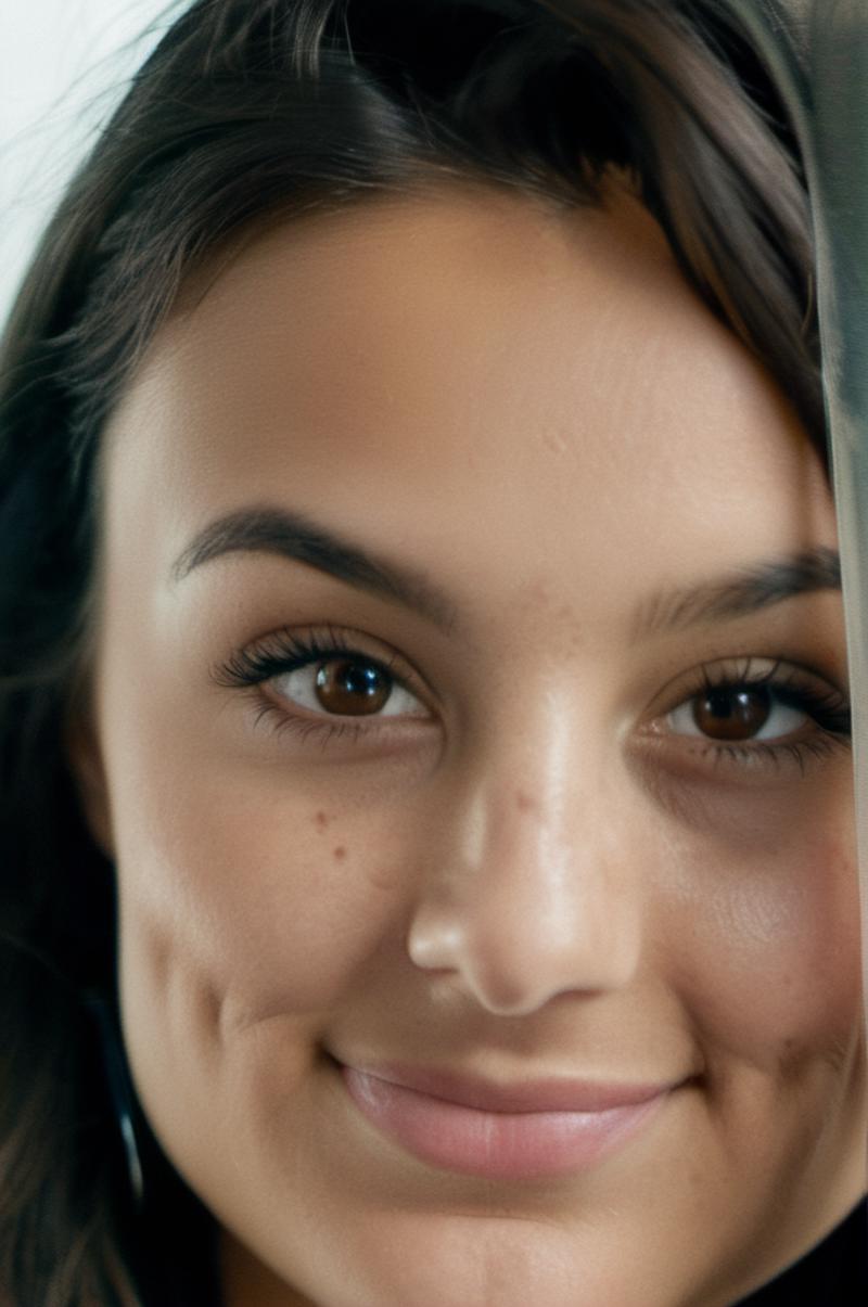SDXL has a hard time with dimples apparently. While it took me a while to solve it with this file, please be warned that over steps or lots of modifications in prompting tend to make her look older than she is.