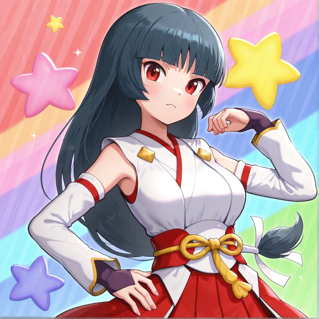 nysabrina, sabrina \(pokemon\), red eyes, black hair, hime cut, low-tied long hair