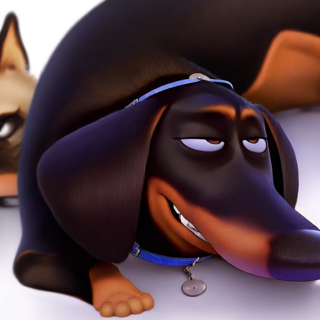 Buddy, Dog, dachshund, Black and Golden-Brown Fur, Brown Eyes, black nose, black ears, Golden brown feet, Blue collar