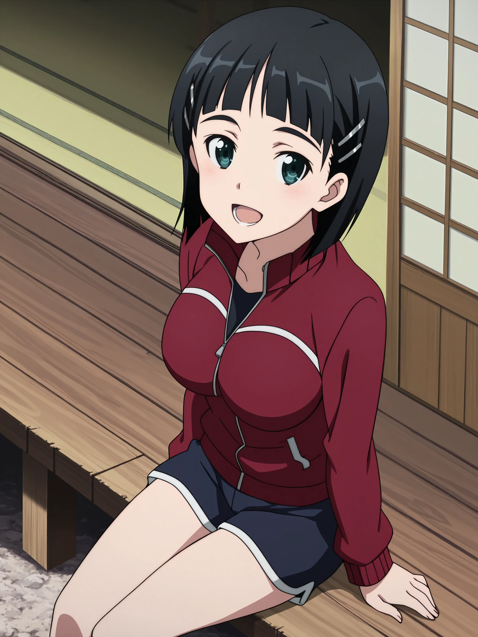 Recommended keywords for Suguha: Suguha Kirigaya (character), 1girl, black hair, short hair, green eyes, large breasts