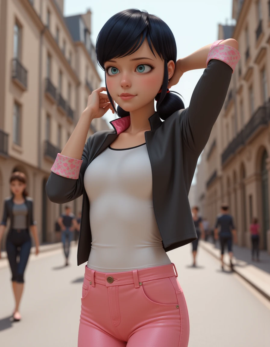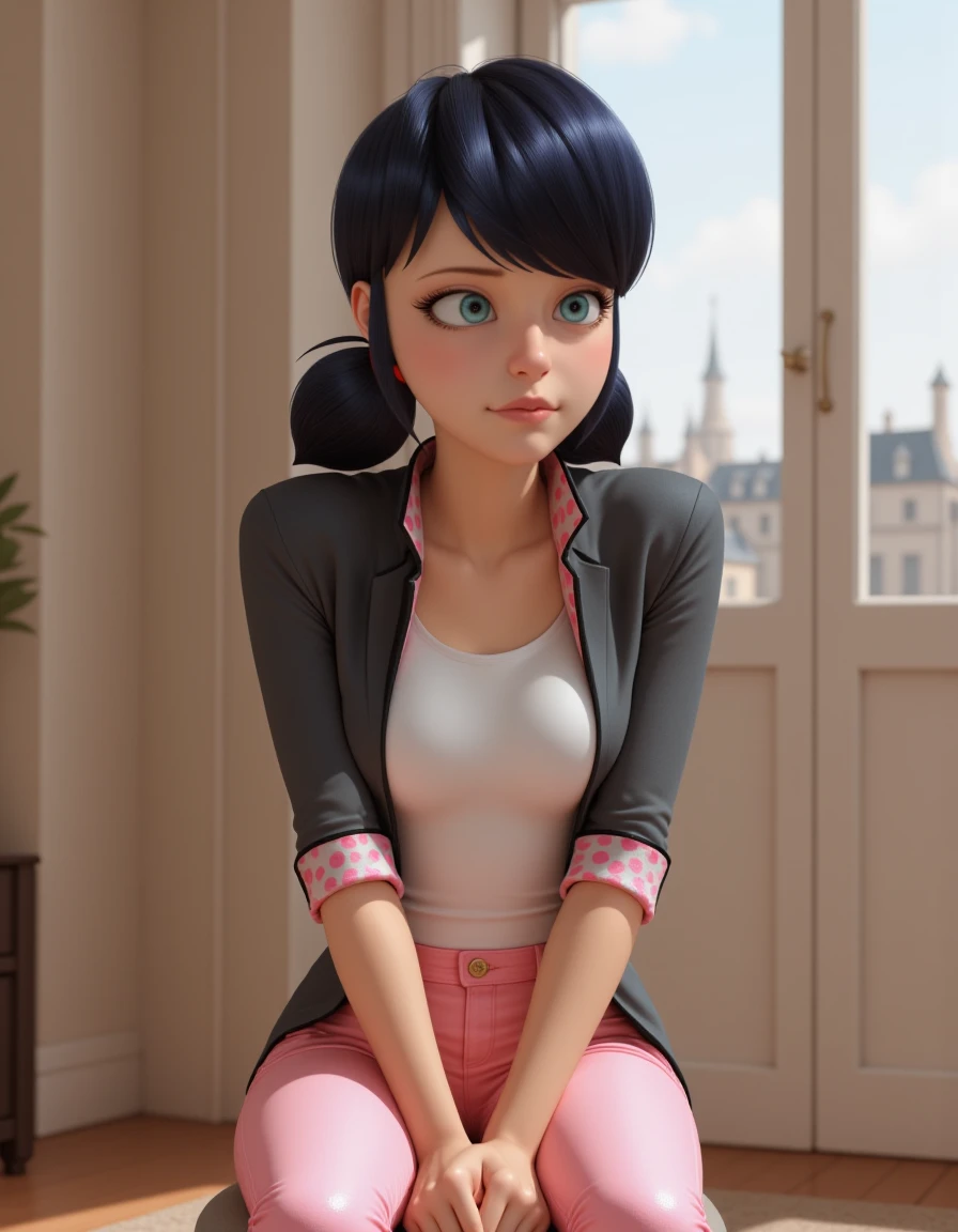 Will Generate images of Marinette Dupain-Cheng and ladybug outfit.