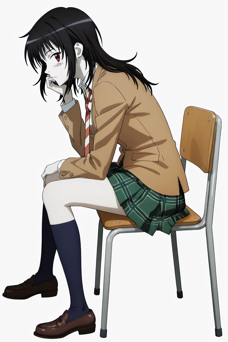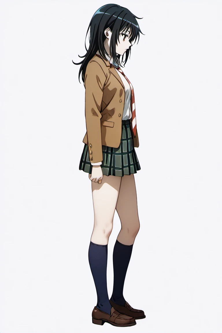 ibara_(coppelion), school uniform, white shirt, brown jacket, necktie, plaid skirt, green skirt, pleated skirt, kneehighs, loafers,