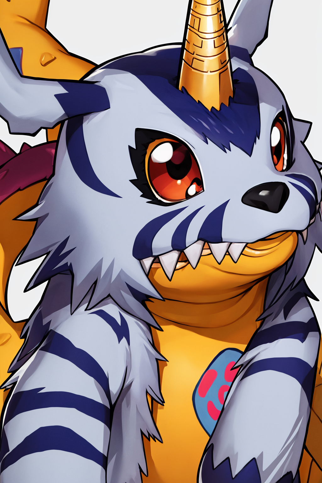 Other prompt : digimon \(creature\), single horn, claws, red eyes, sharp teeth, creature