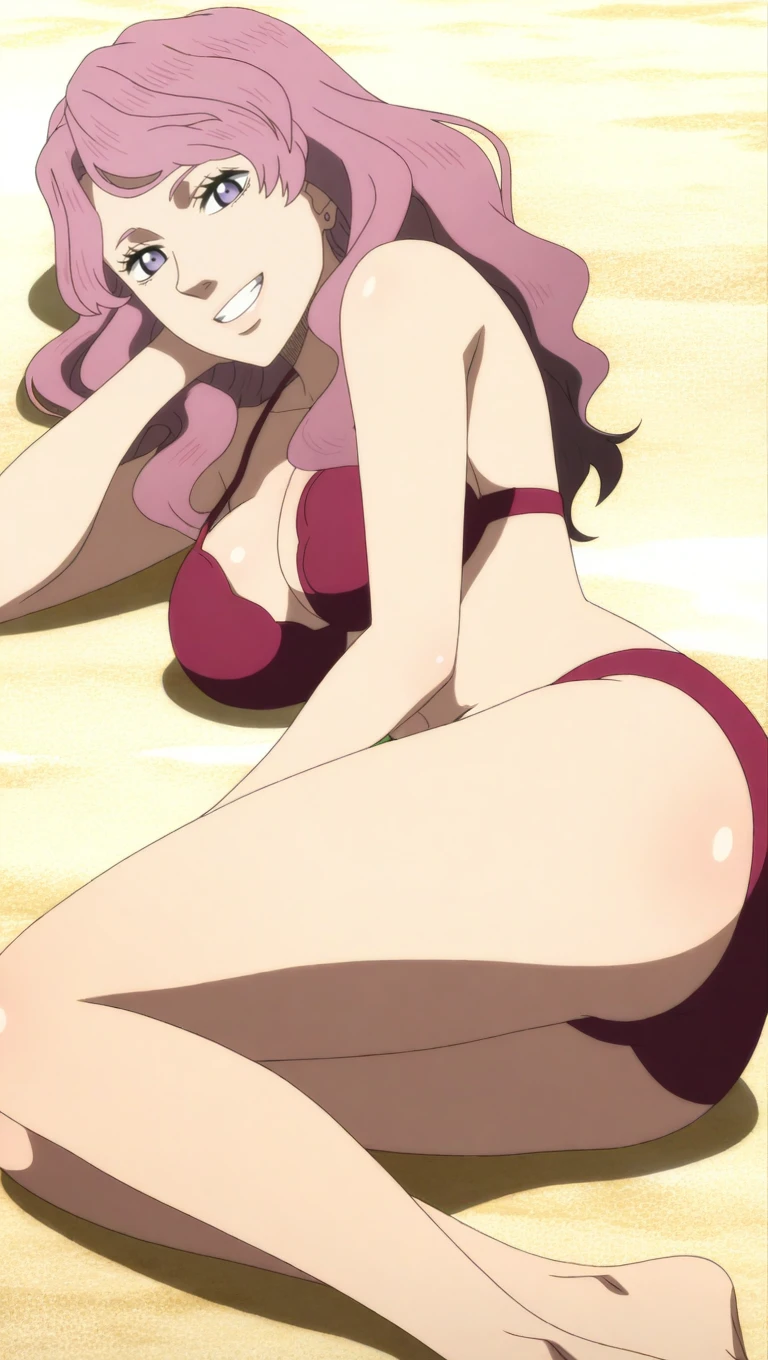 vanessa enoteca, pink hair, purple eyes, long hair,
