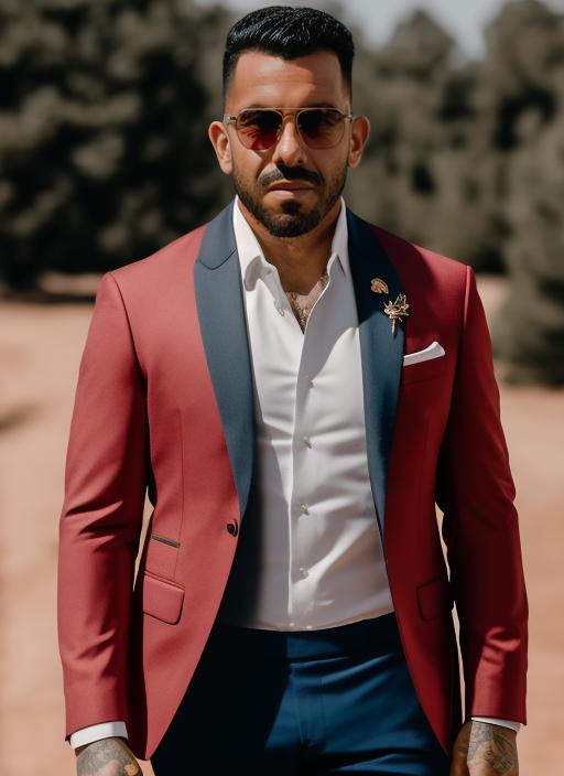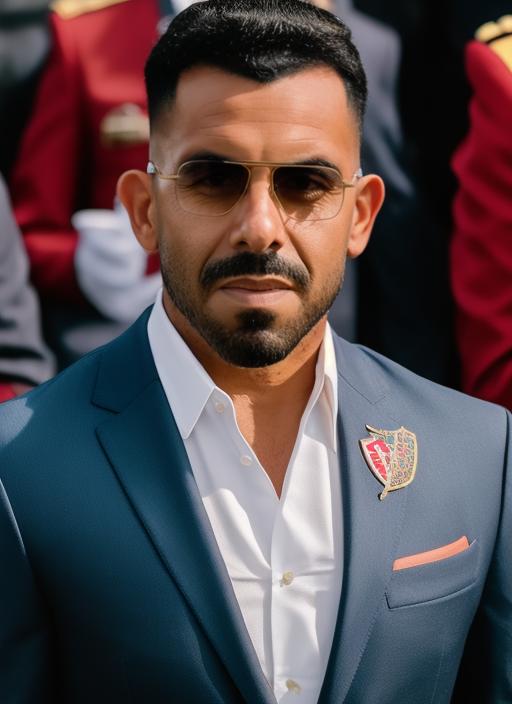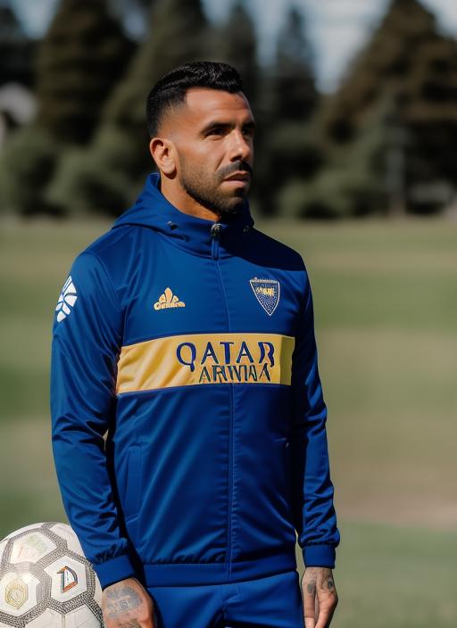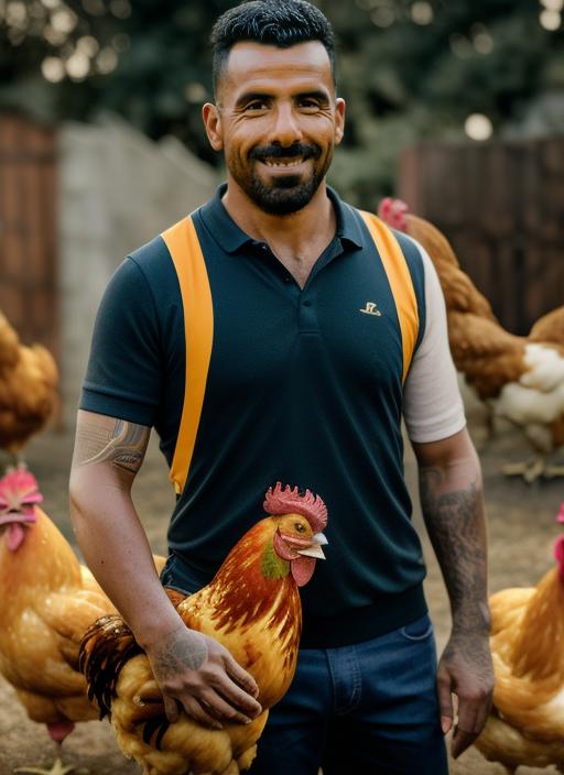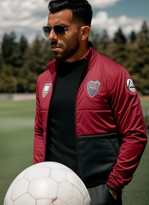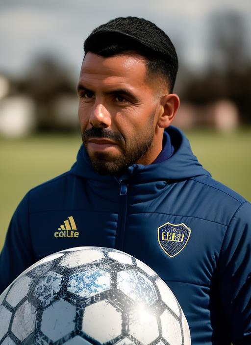 "sks man (tevez:1)..." using the LoRA.