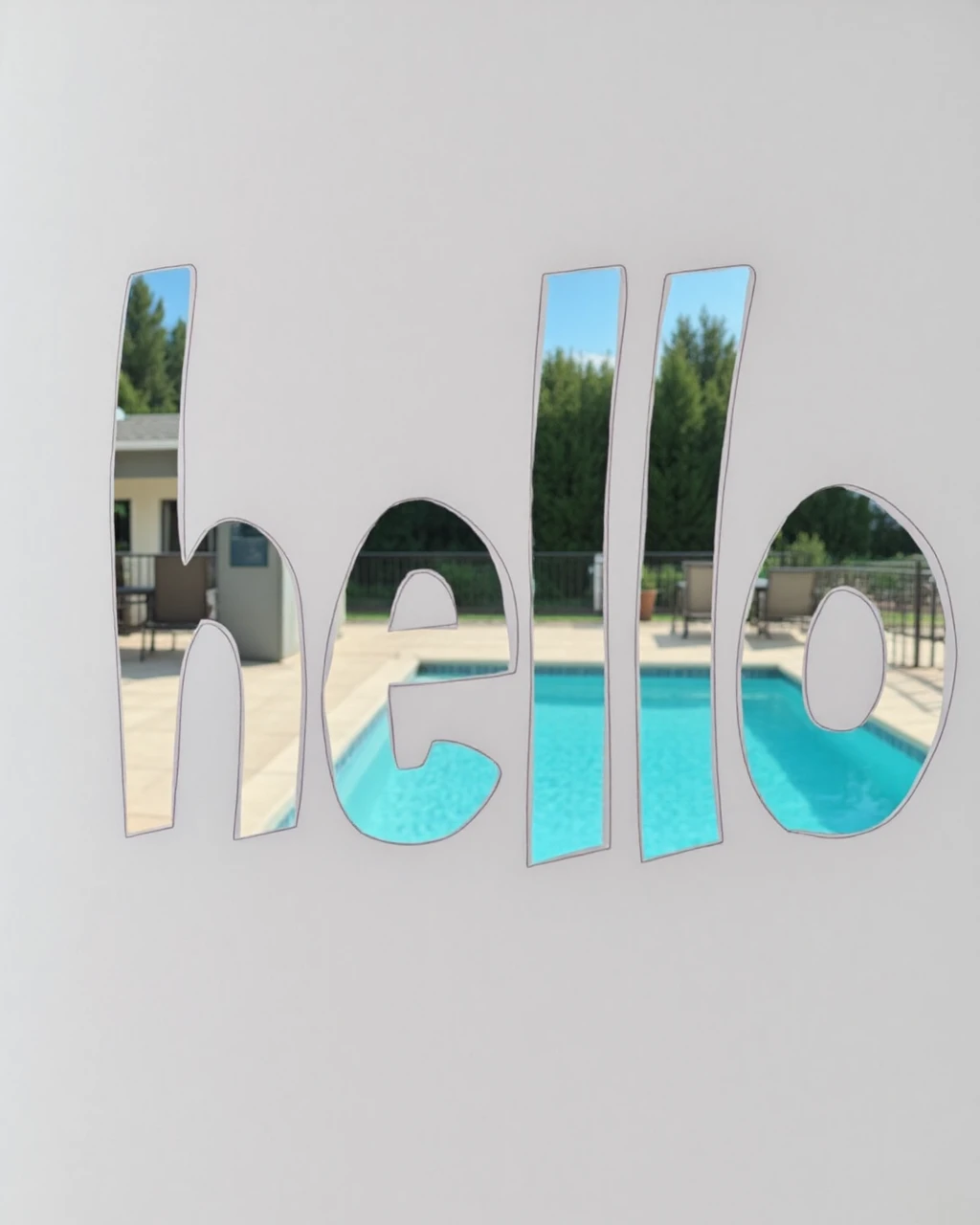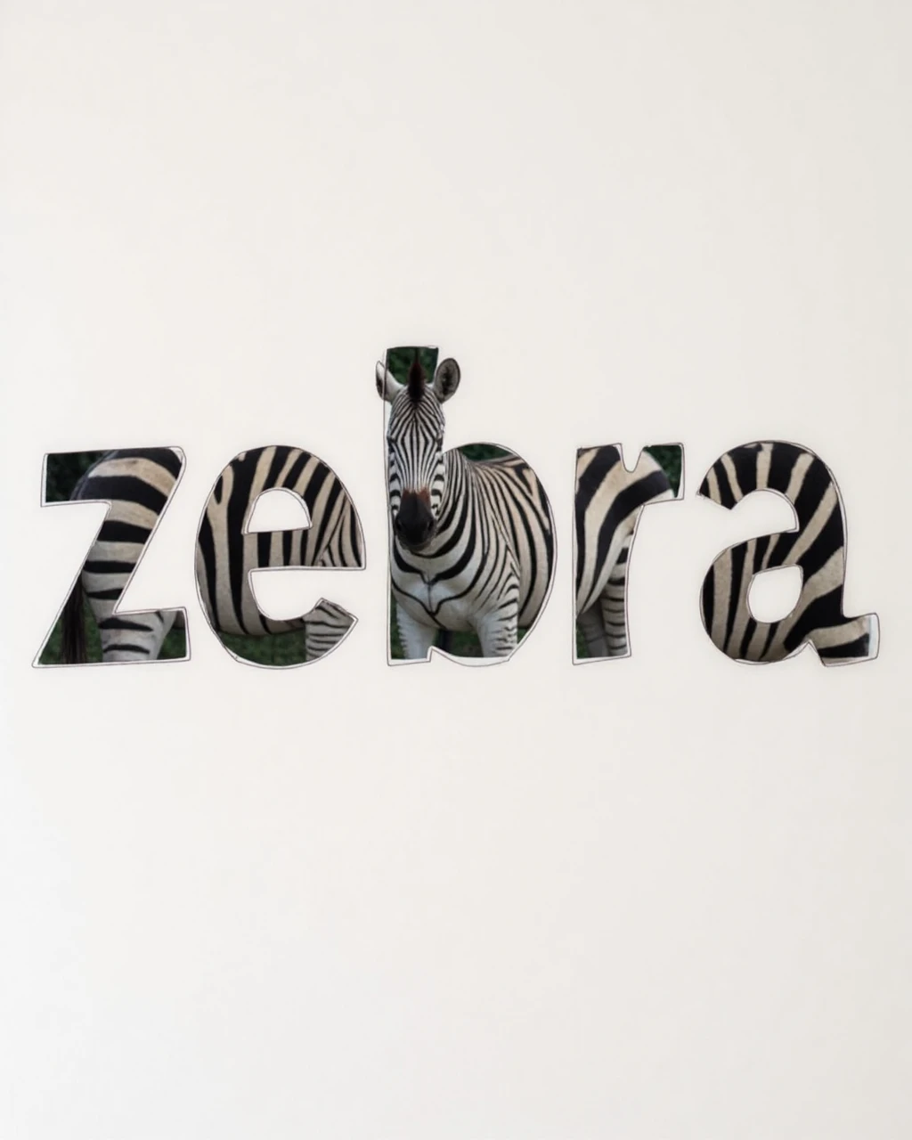 the text "Hellow" is cutout, behind is an albino zebra. white paper