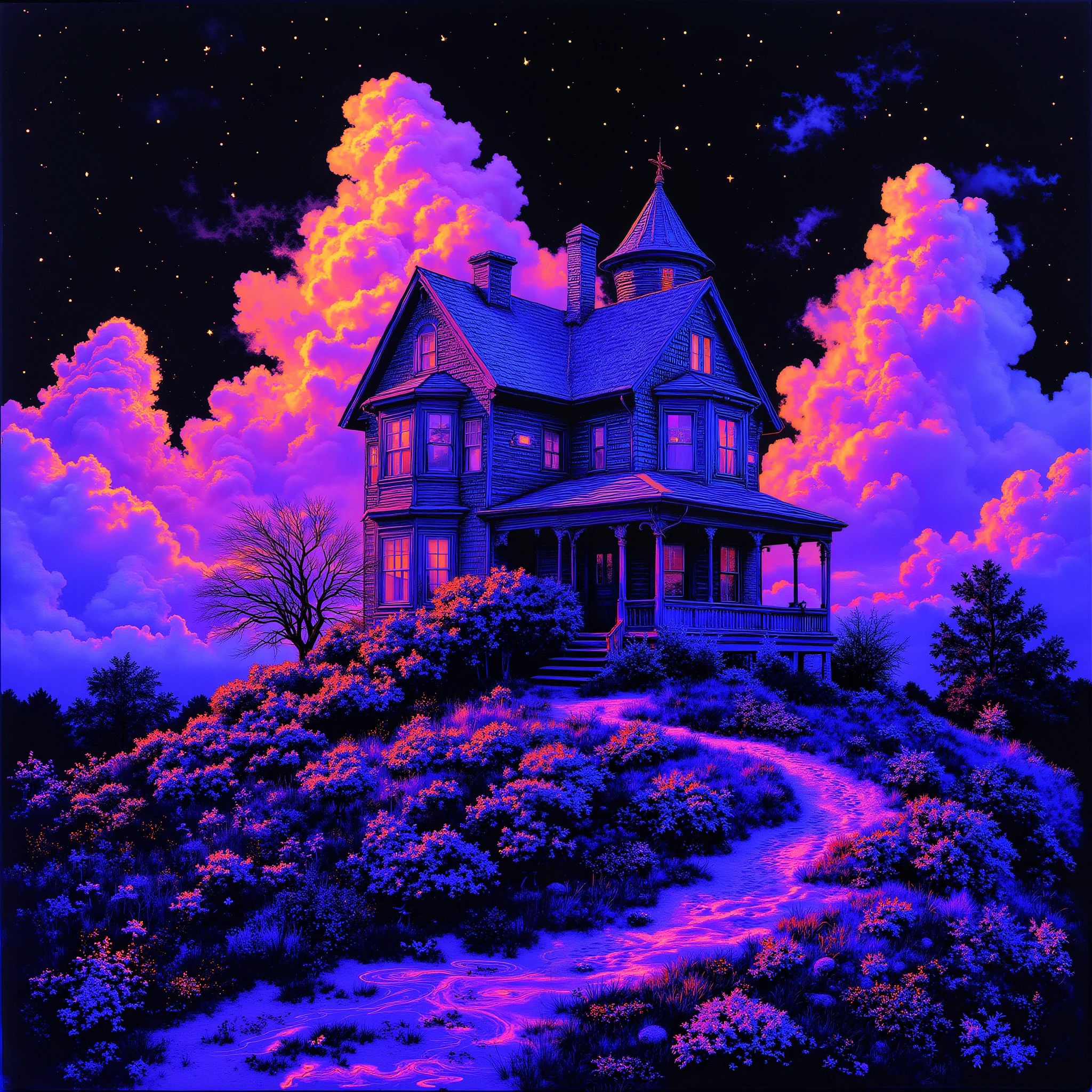 LoRA trained on FLUX dev model to generate neon / UV lit images.