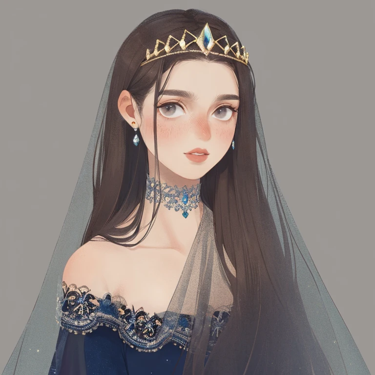 girl, cute, illustration, brown hair, headband, pink, blush, smile, portrait