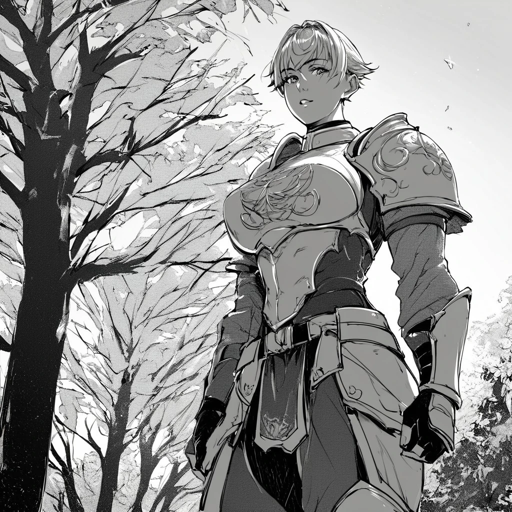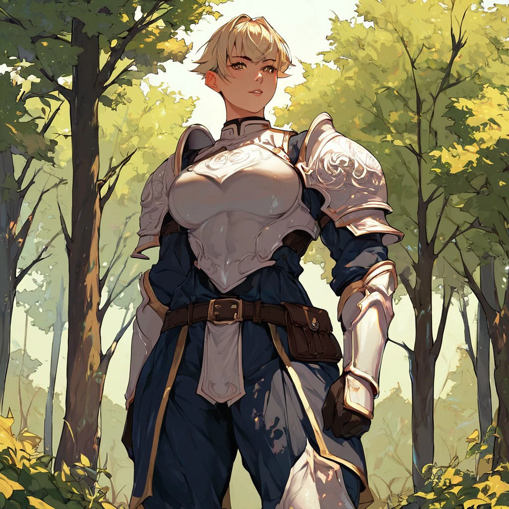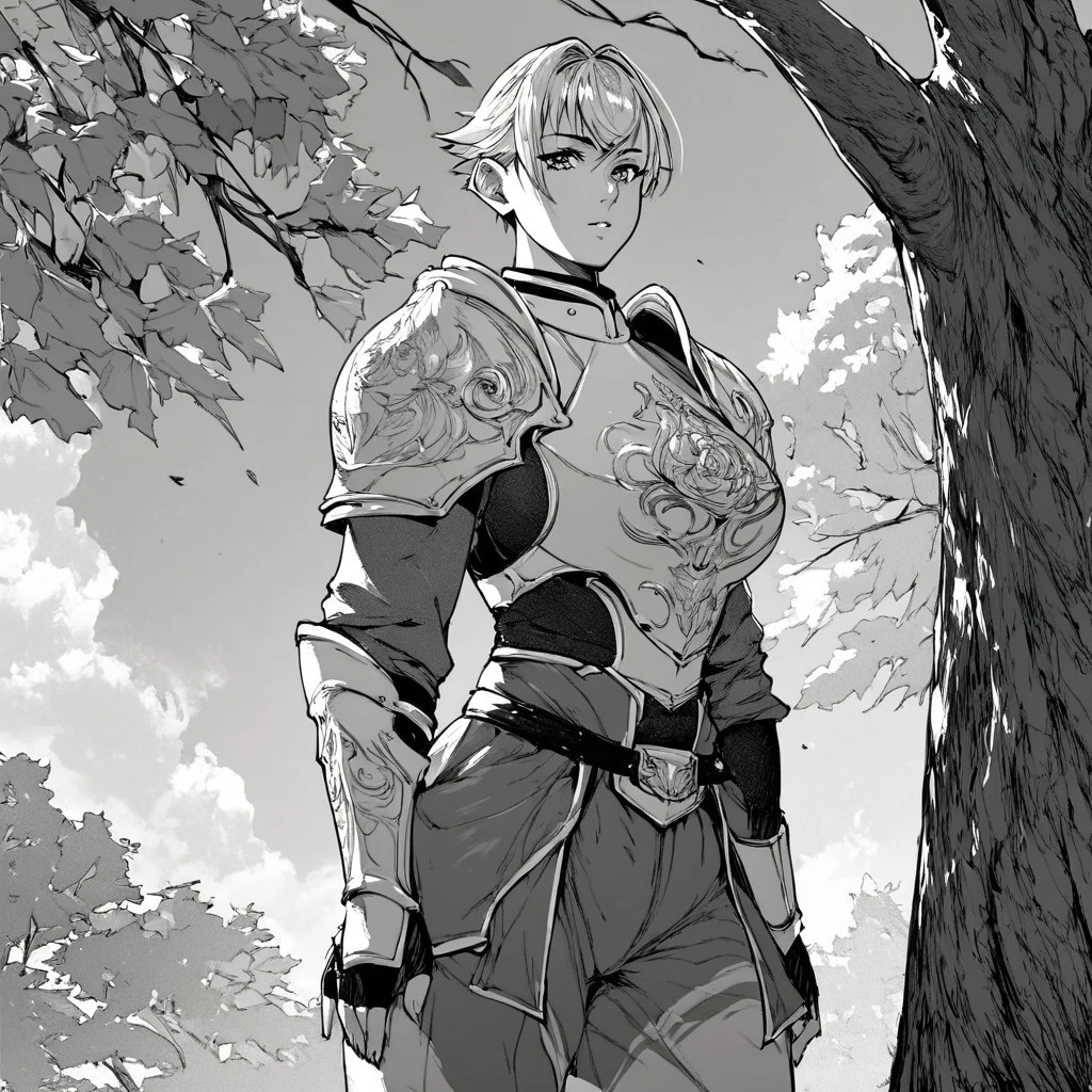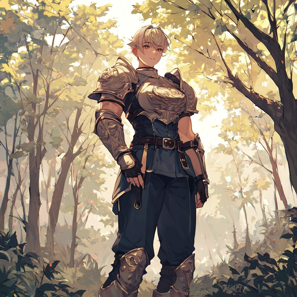 short hair, tomboy, shoulder armor, uniform, muscular female, armor,