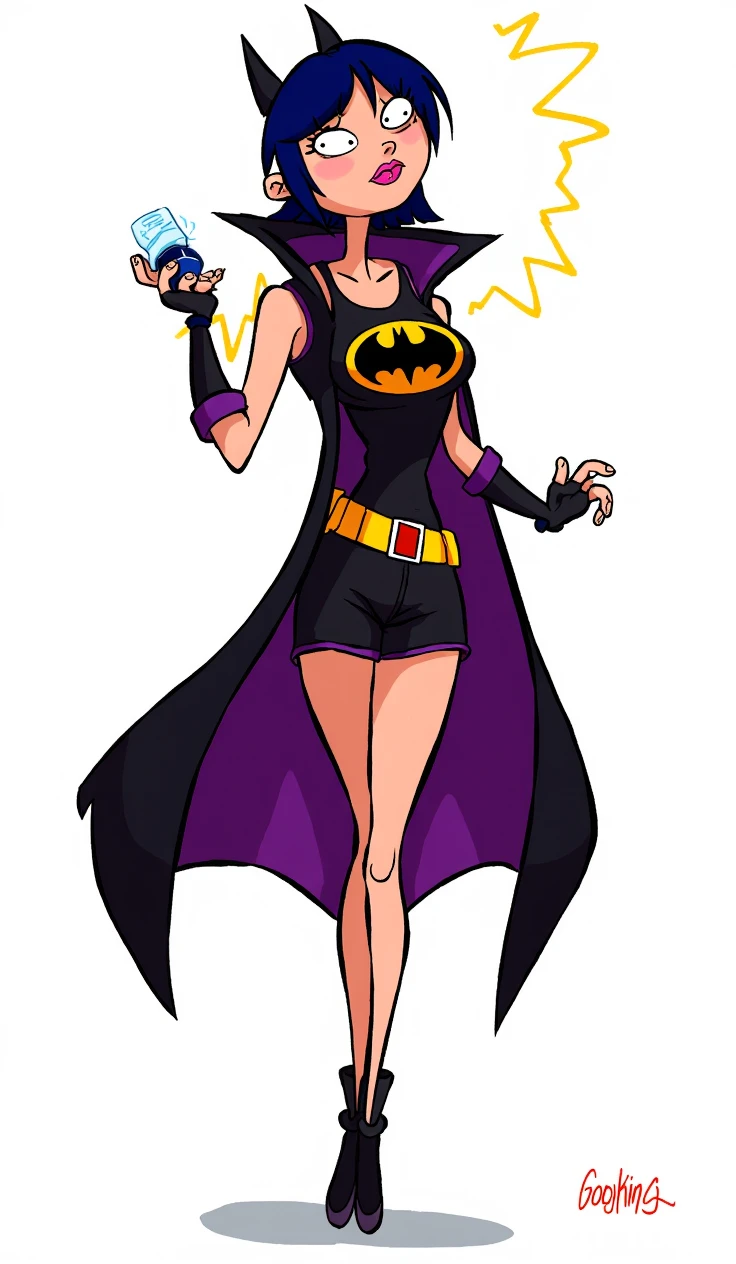 ... use this " full-body view on white background, exaggerated cartoon proportions