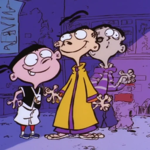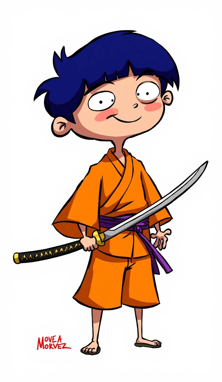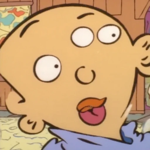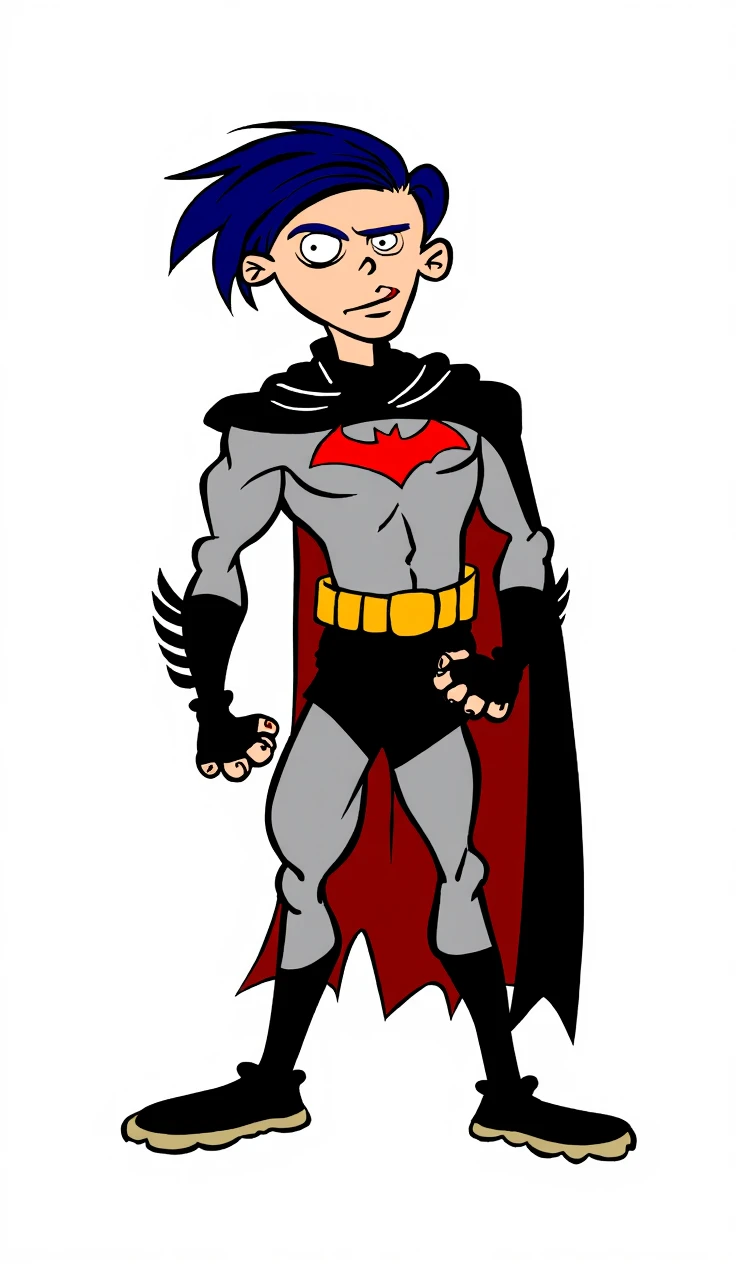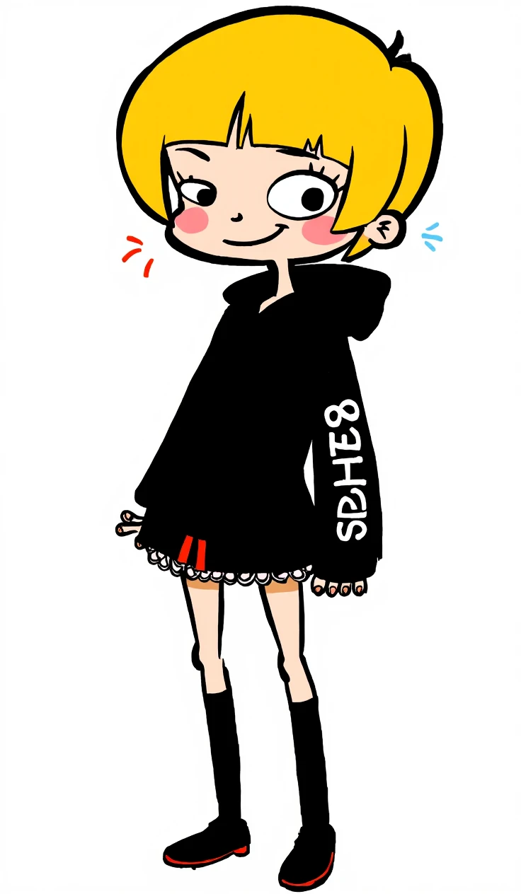 The character, exaggerated and simplistic art style with bold lines and bright colors."