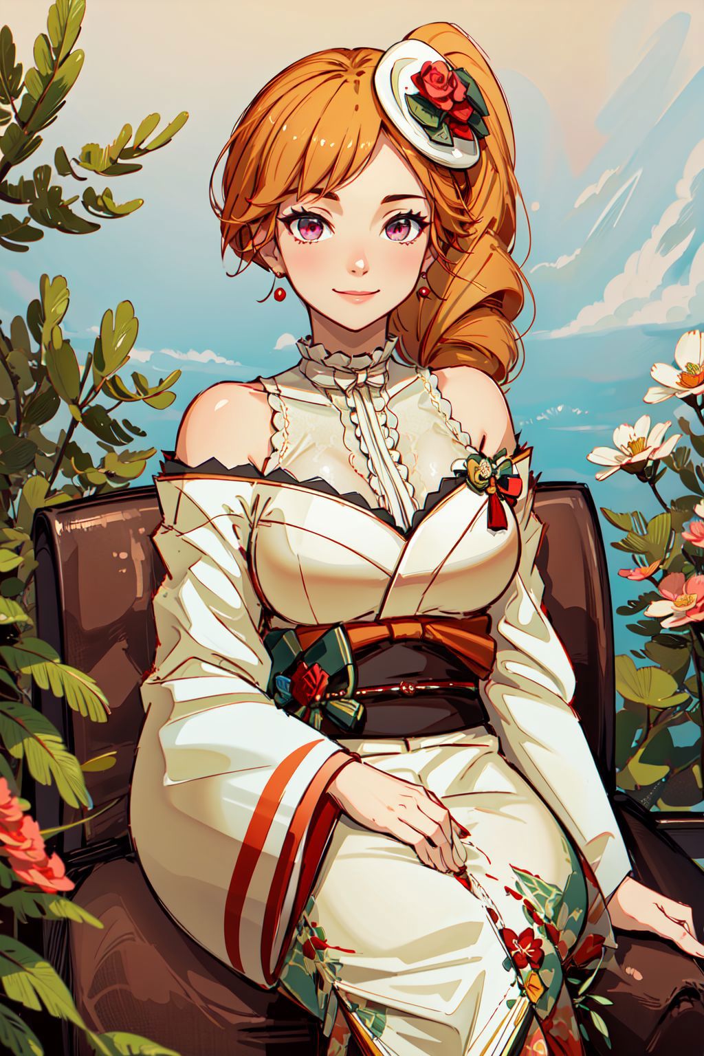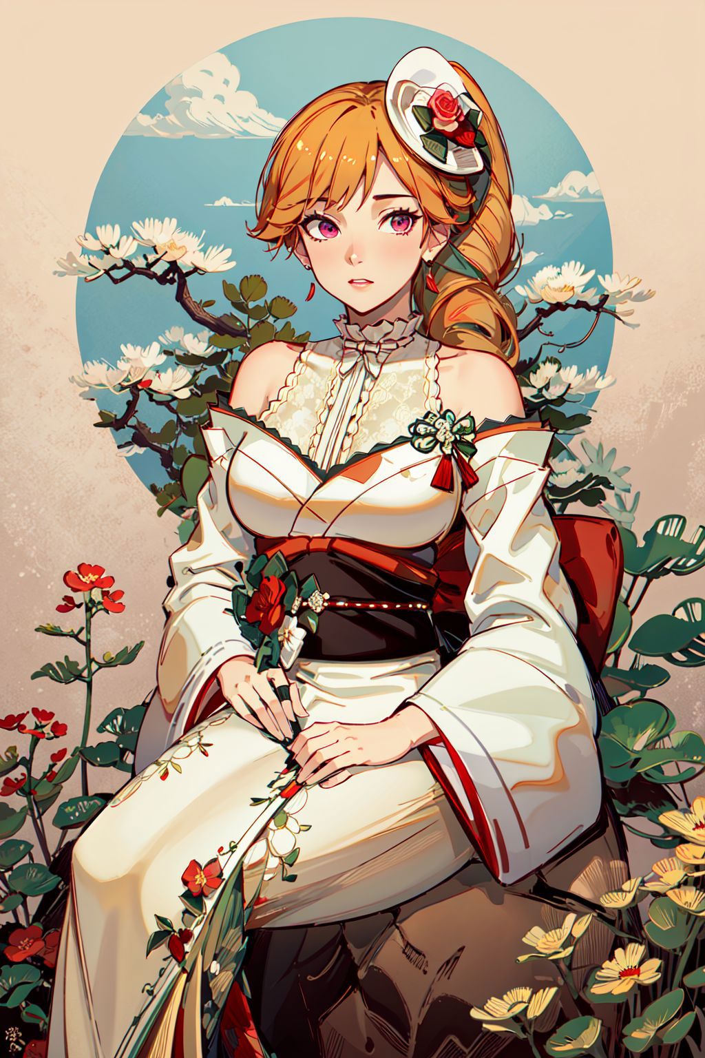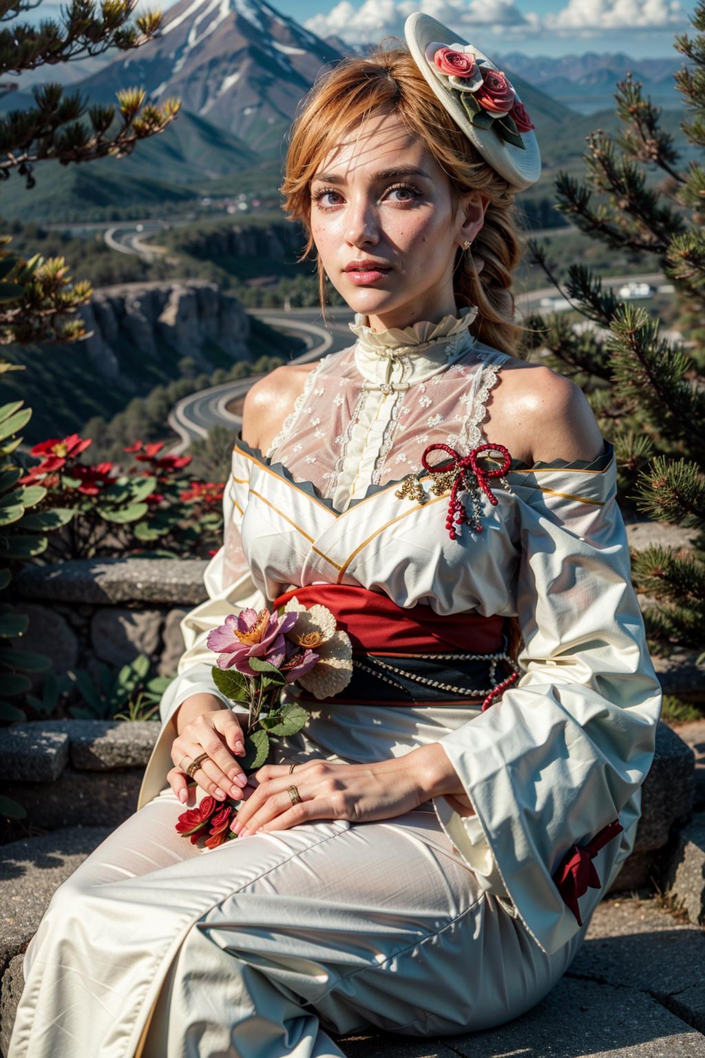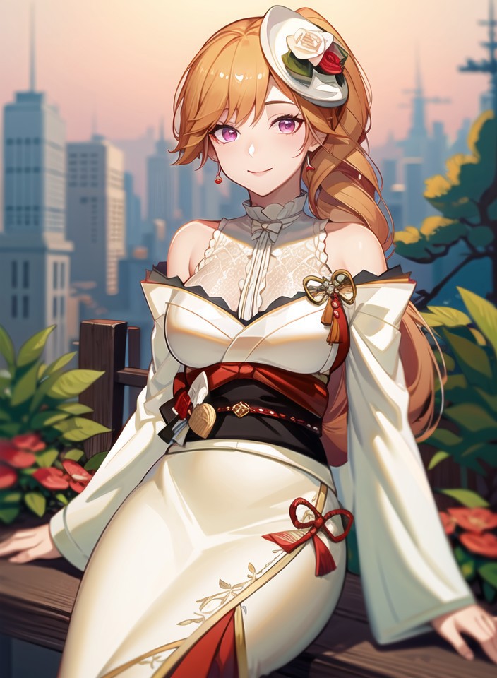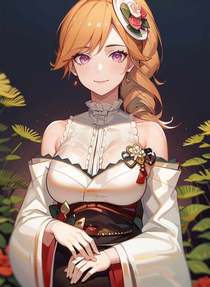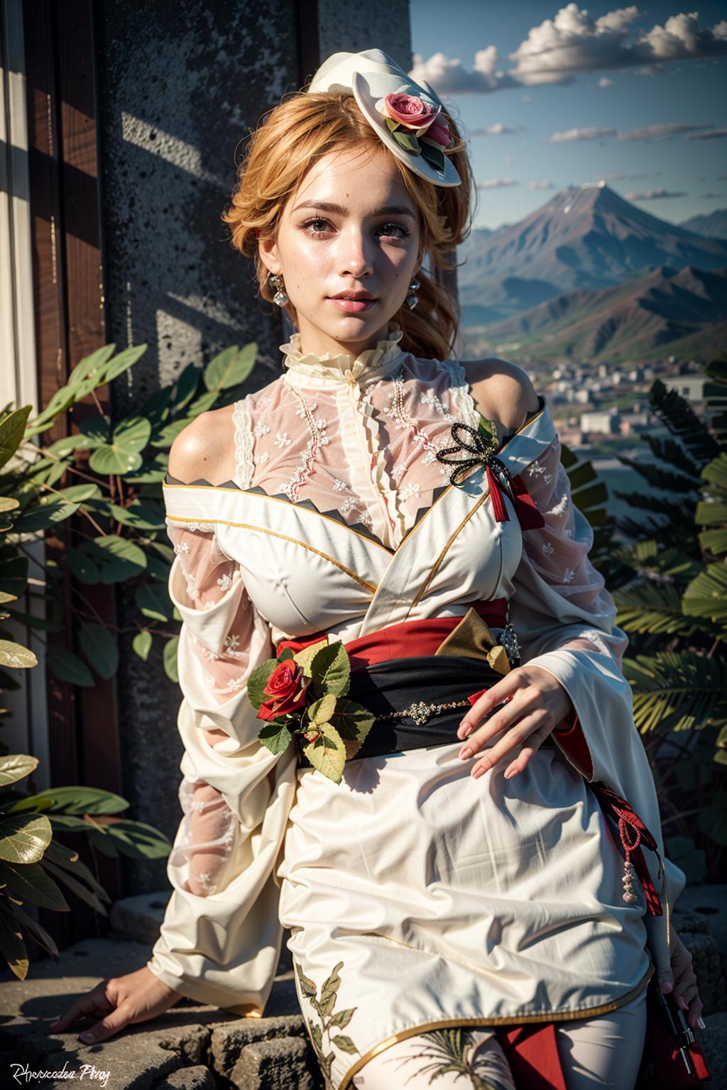 RichelieuProphecy, center_frills,drill_ponytail, floral_print, frilled_kimono, hat_flower, japanese_clothes, mini_hat, red_flower, red_rose, red_sash, sash, side_drill,white_kimono, wide_sleeves, tilted_headwearNote: Because of the lack of image of this particular skin in the training dataset (especially non-sitting full body drawing) this LoRA is subject to pose bias if you try to use that particular skin (and the lower body part can be innacurate)