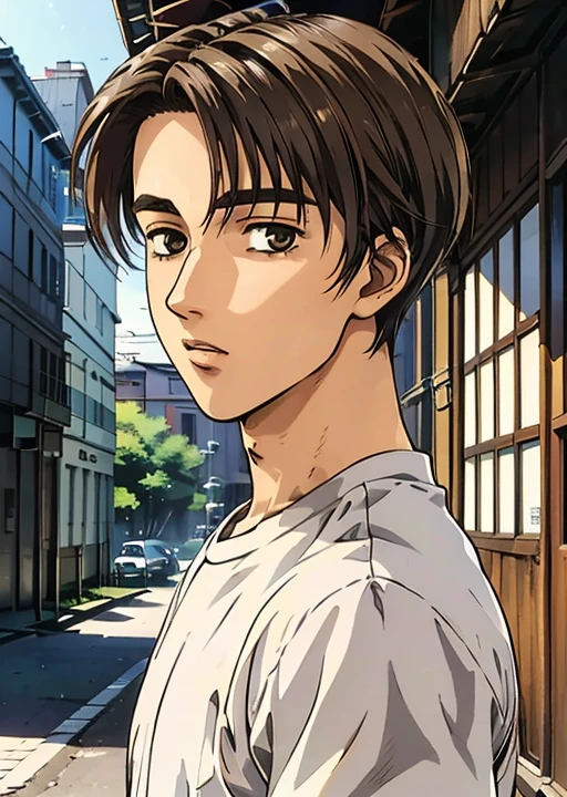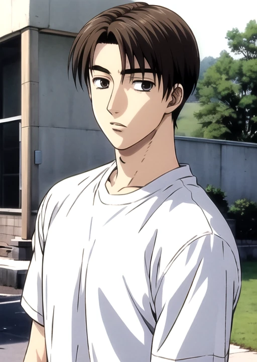• Character trigger : takumi_fujiwara, 1boy, solo, brown hair, shirt