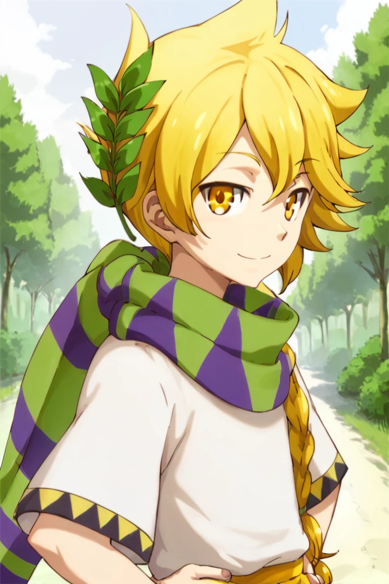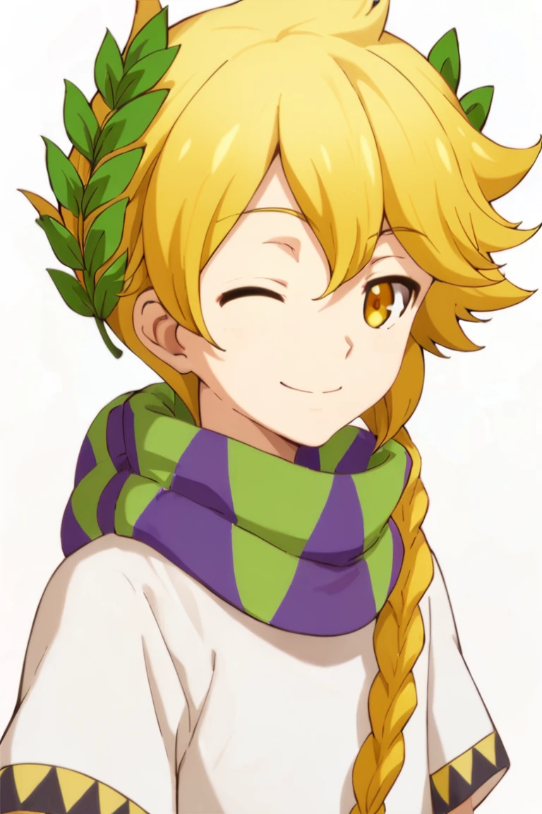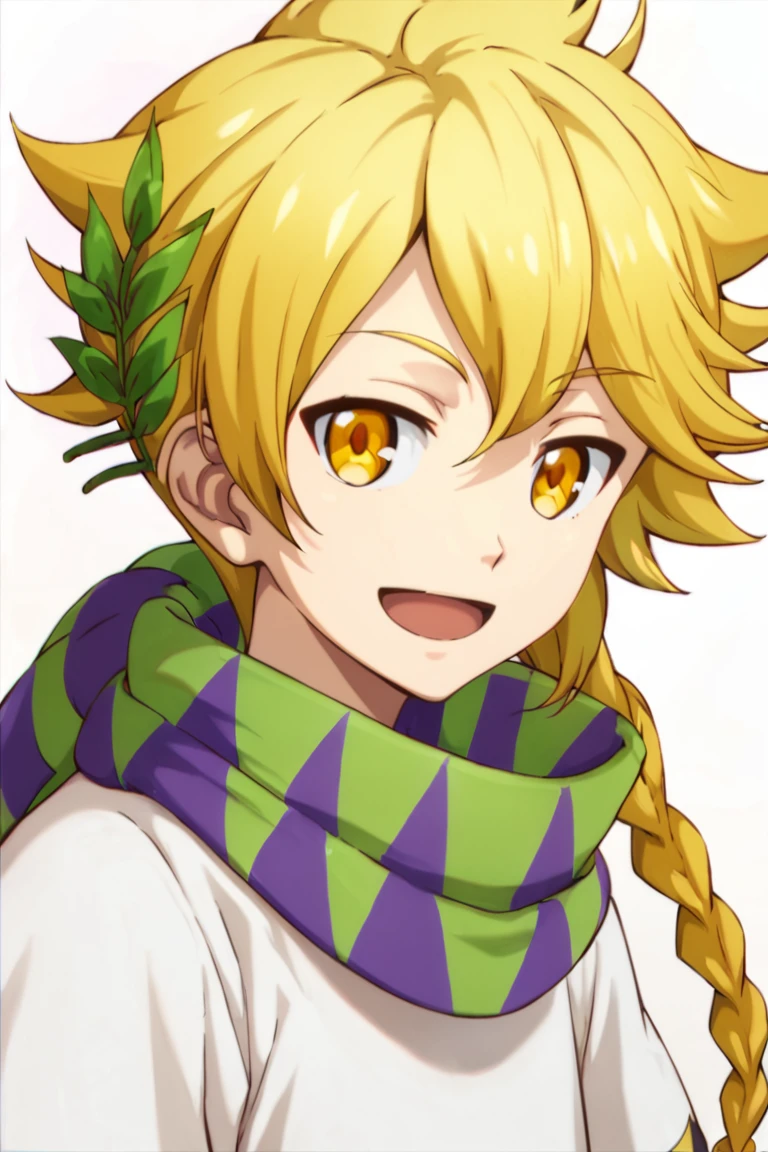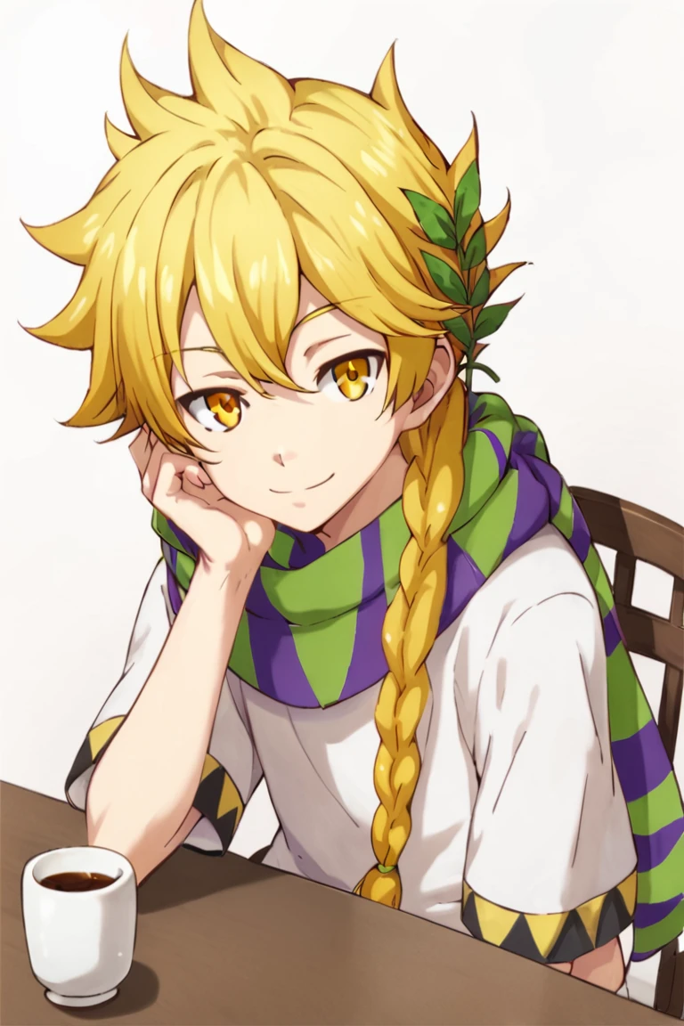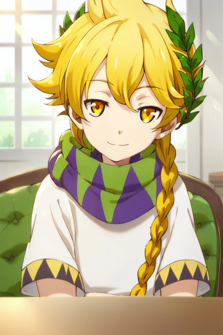 kufo,blonde hair,long hair,single braid,yellow eyes,