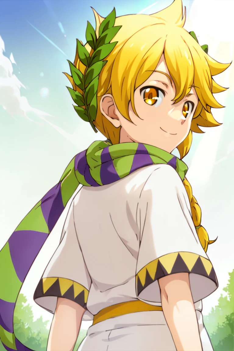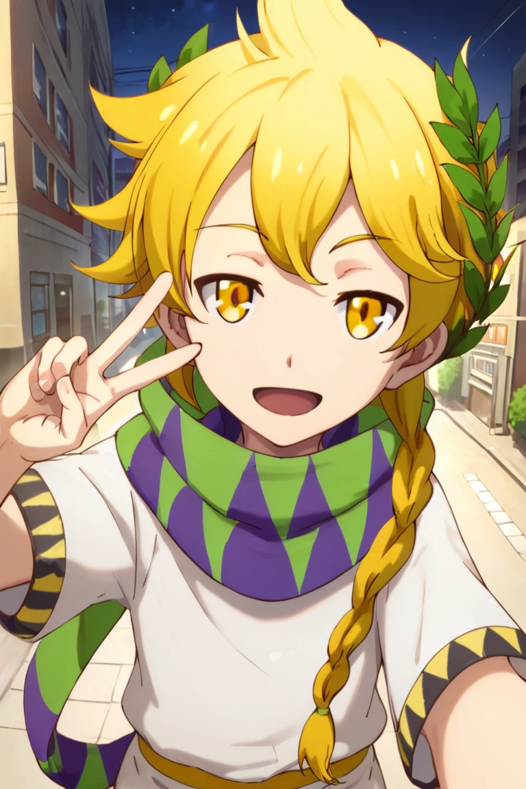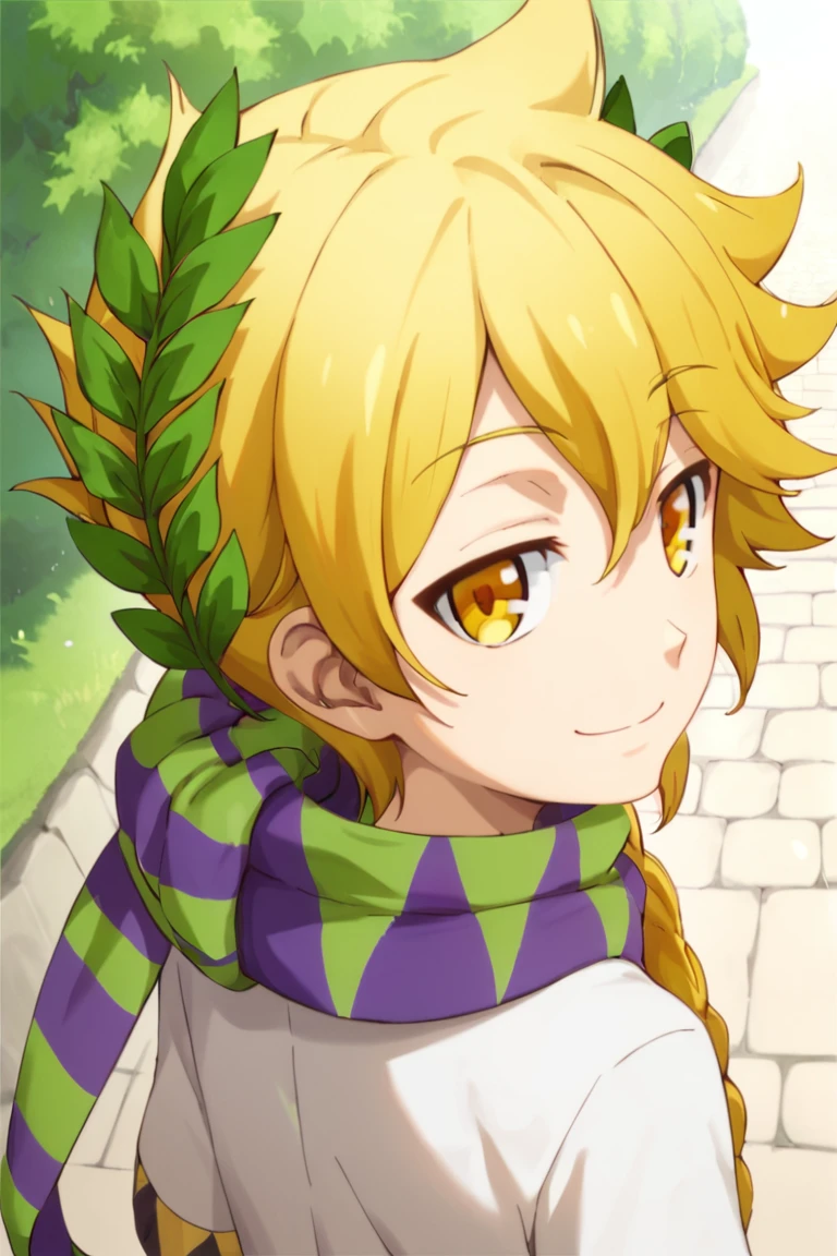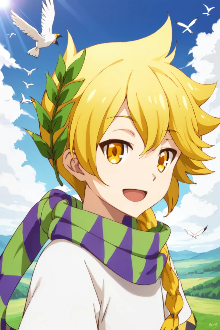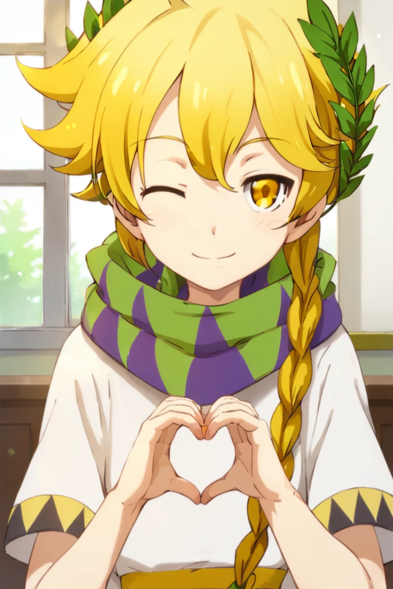 kufo,blonde hair,long hair,single braid,yellow eyes,
