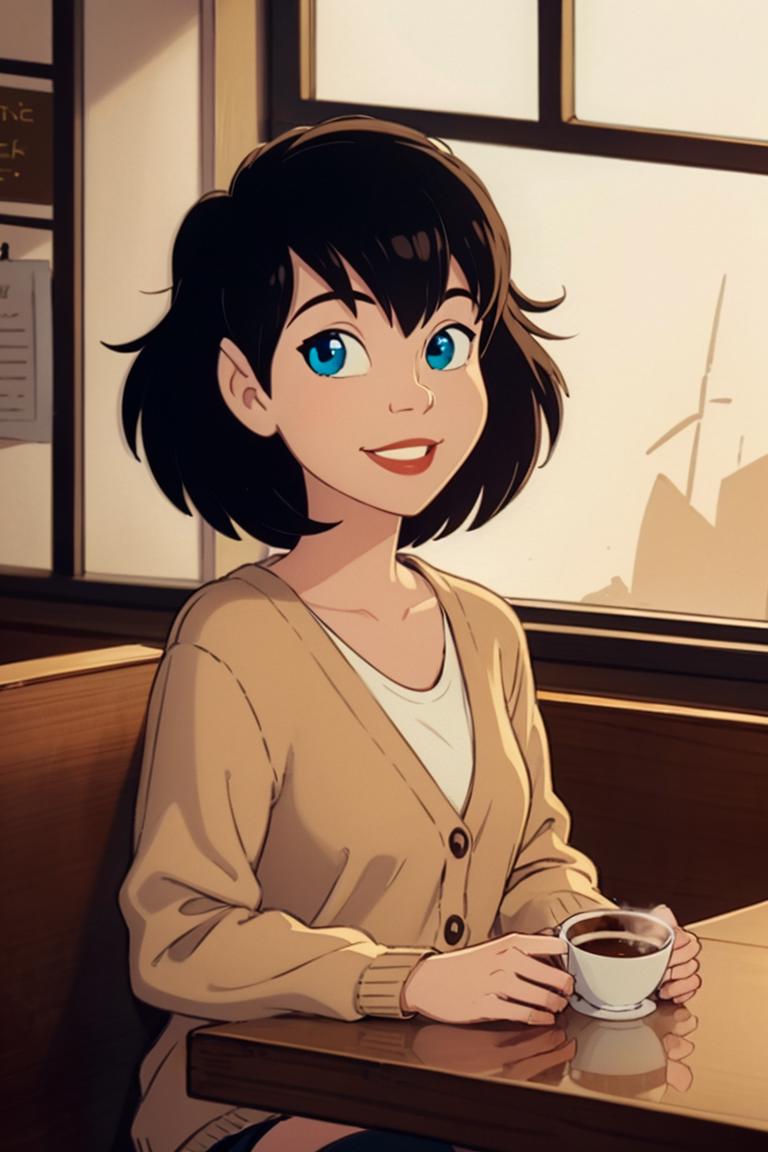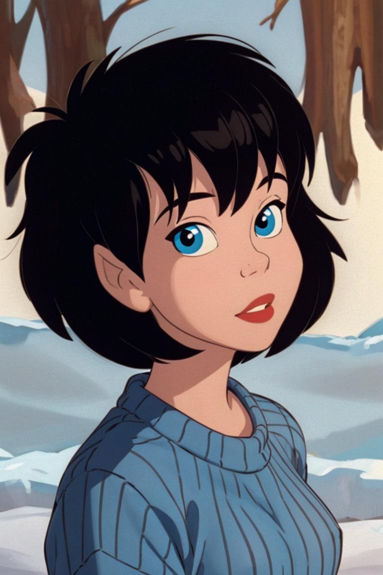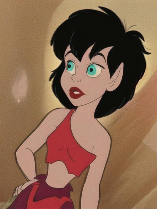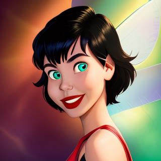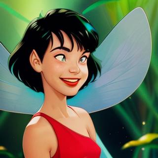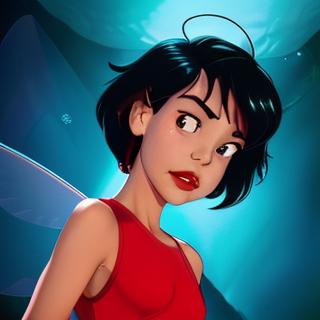 No triggerword I forgor, but some variation of words like 1girl, short black hair, blue eyes, red lips, should help maintain likeness and words like red dress, exposed navel, fairy wings if you want her complete film look,