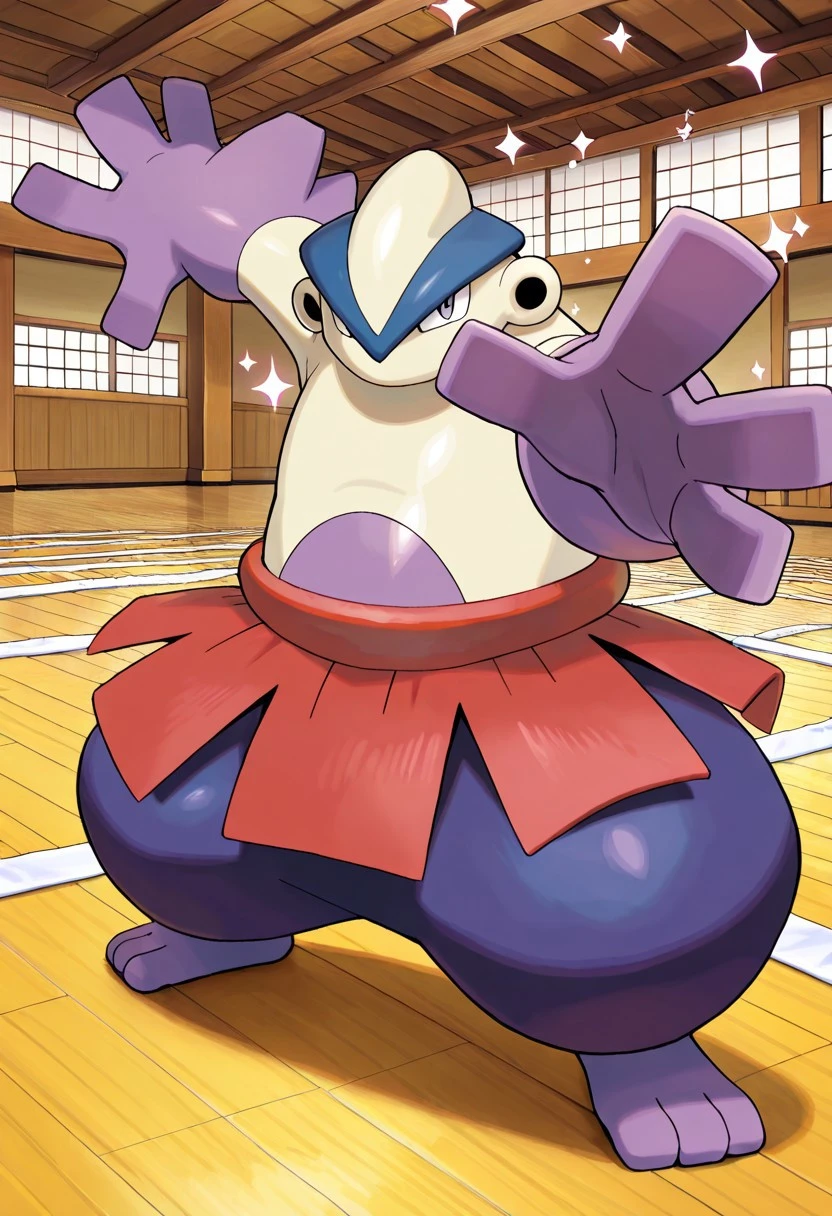 Shiny Tags: Shiny_Hariyama, purple hands, purple feet, purple abdomen, red frills