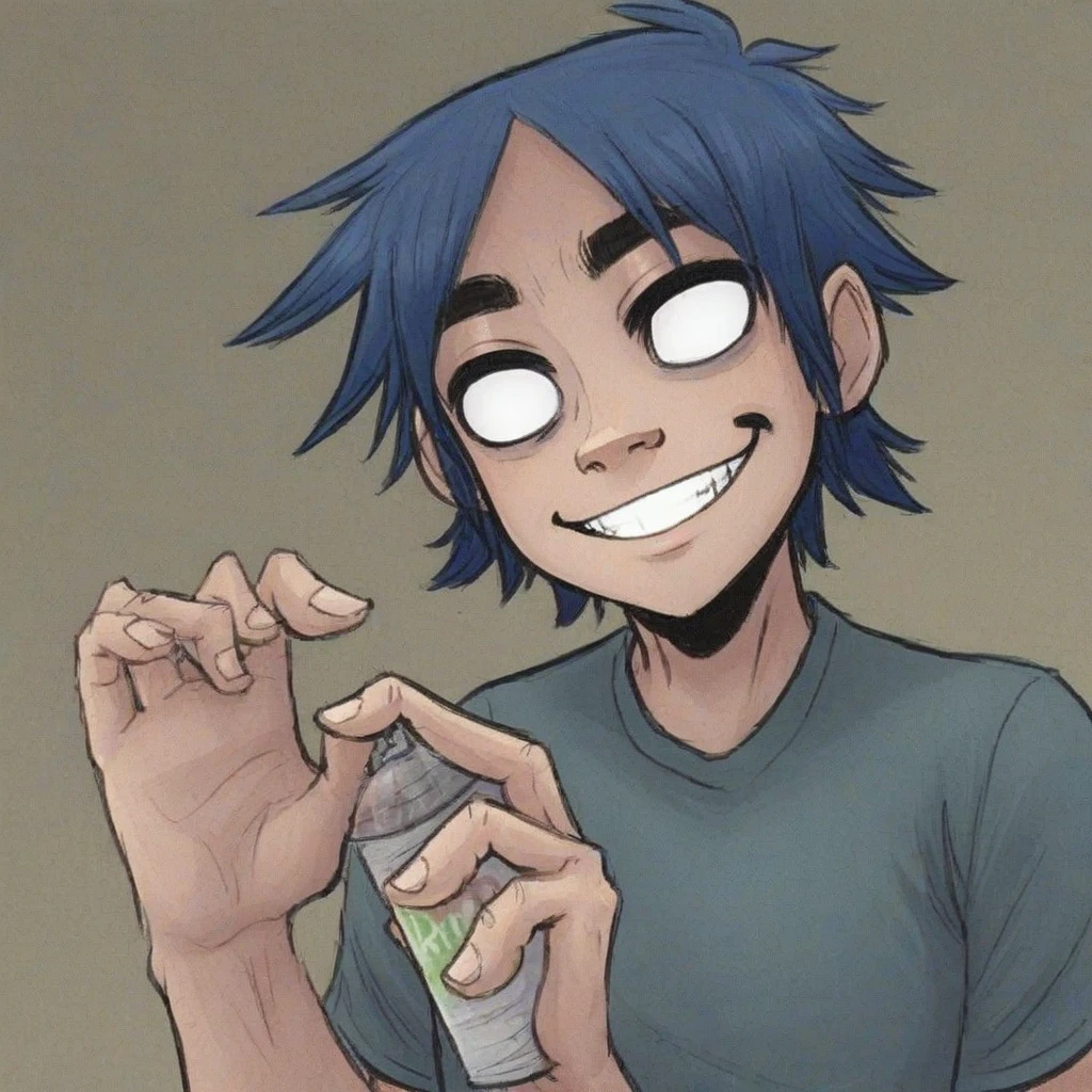 1man, white eyes, blue hair, smile, shirt, 2DGz,