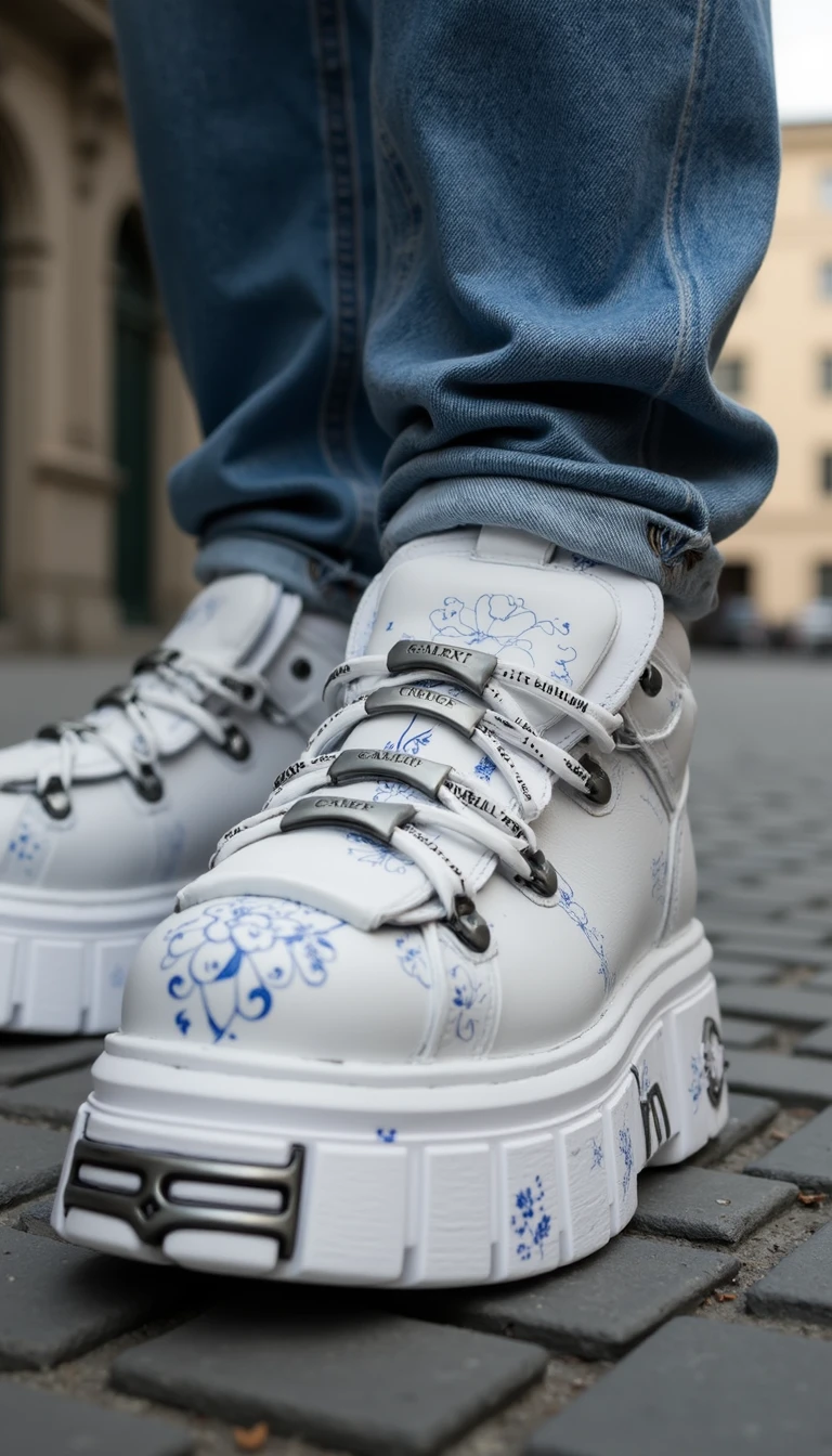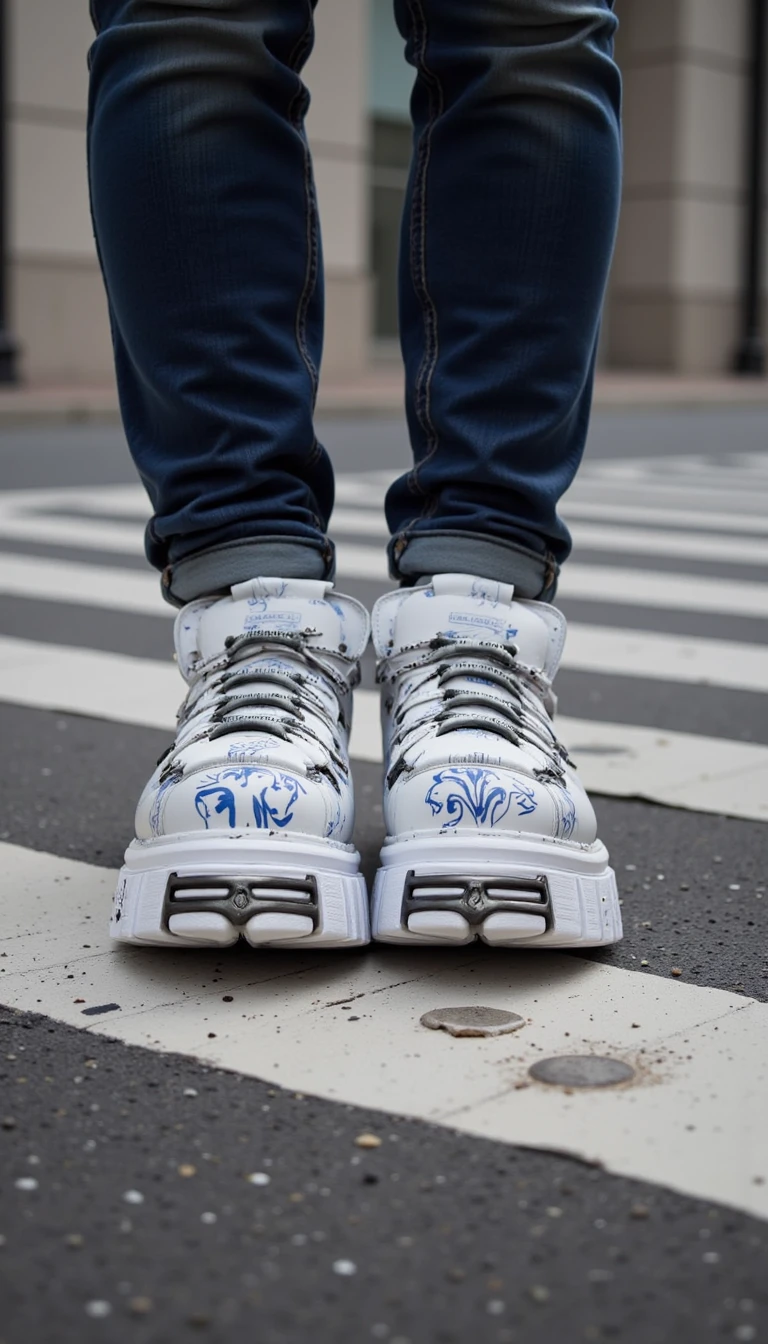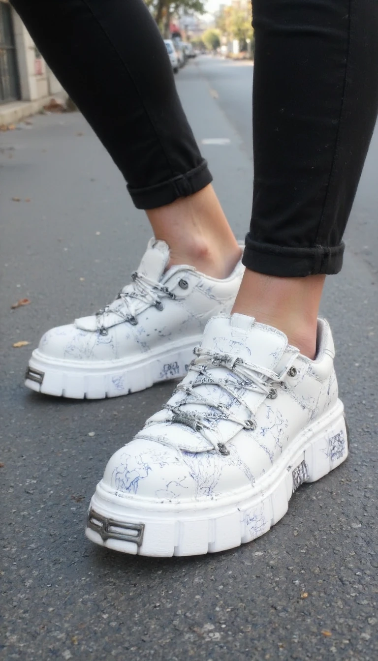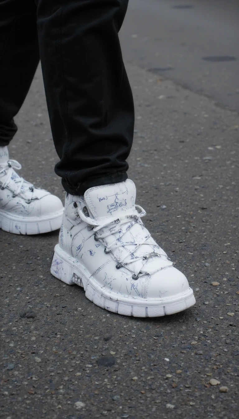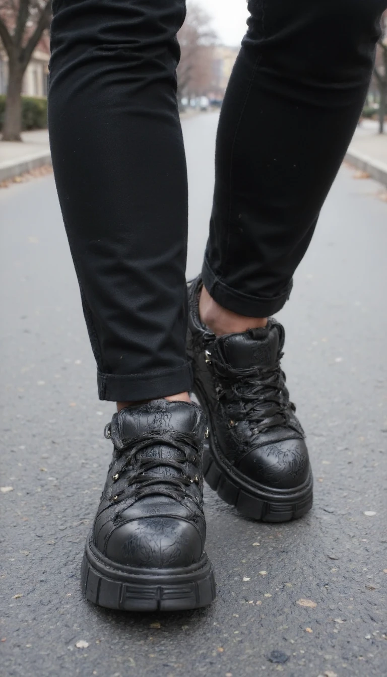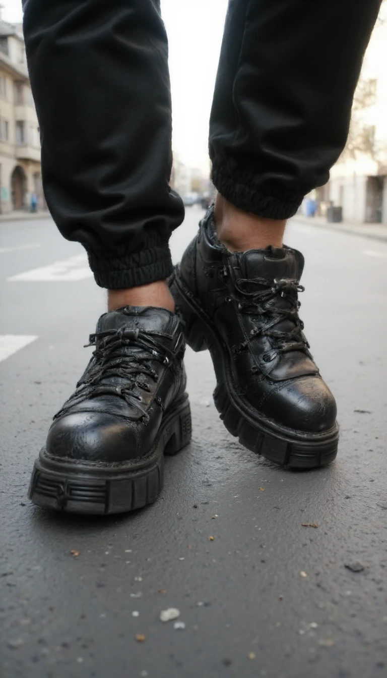 my prompt which I used for my images: n3wr0ck, close-up of shoes worn on the feet on the street