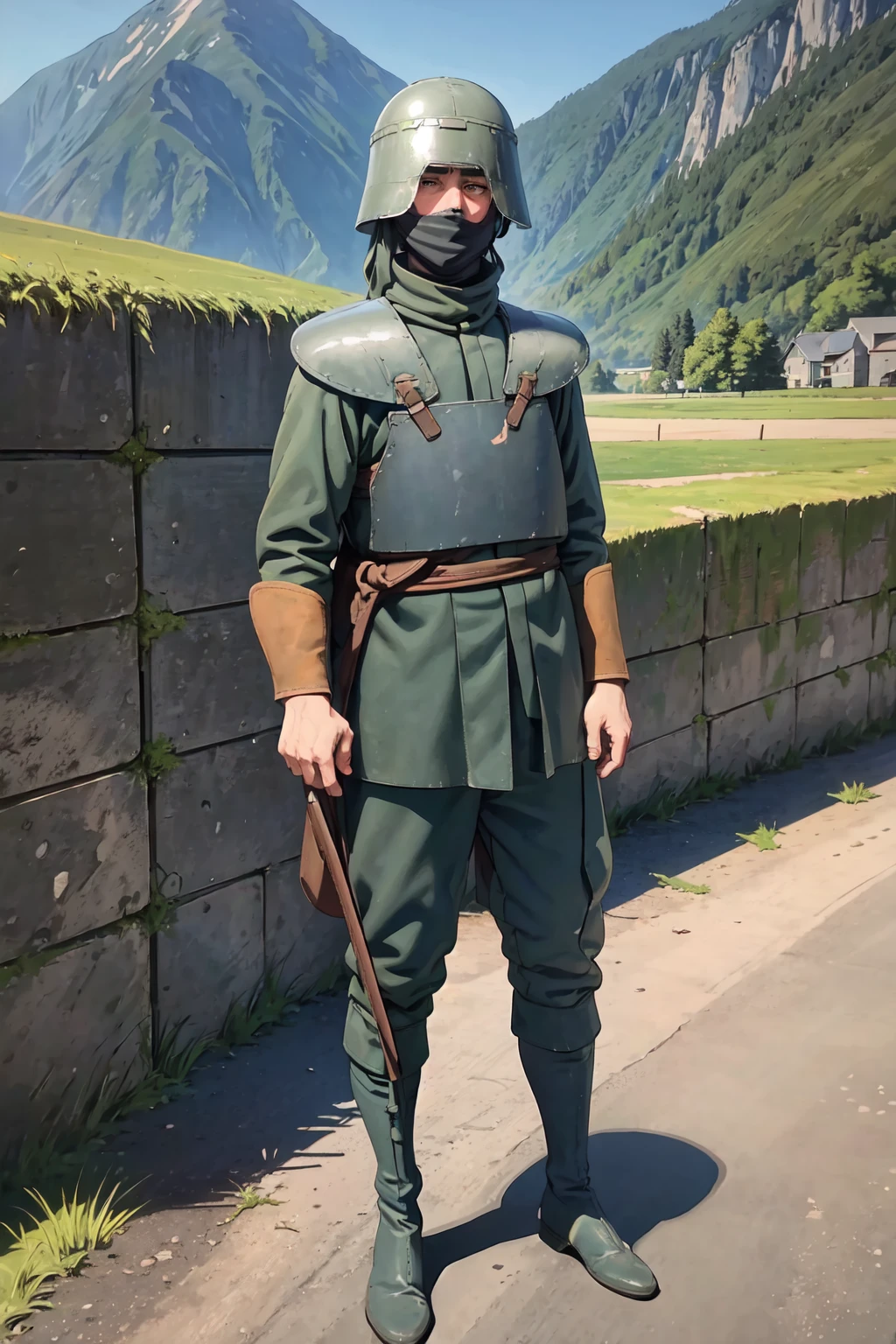 The "Farina" armor worn by elite Italian units in World War I. Prompt is "WW1ITA" along with "armor,helmet,military uniform"