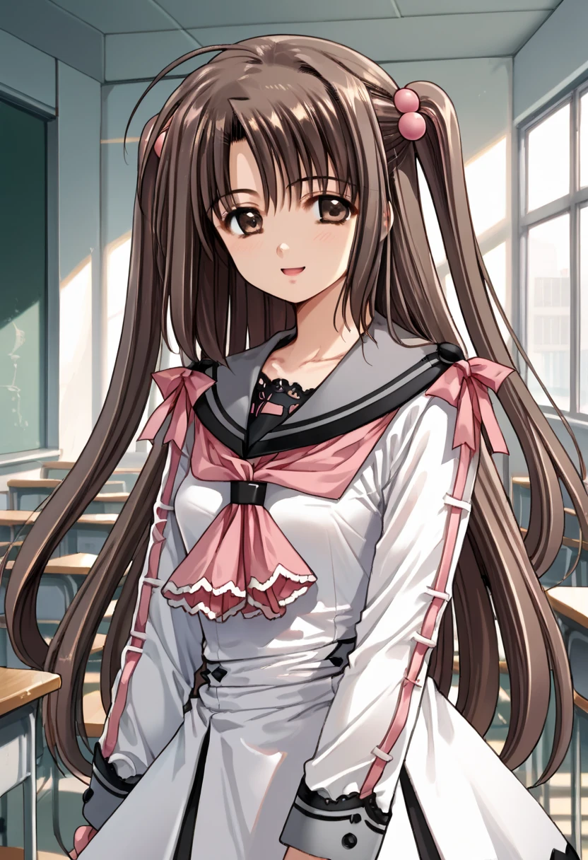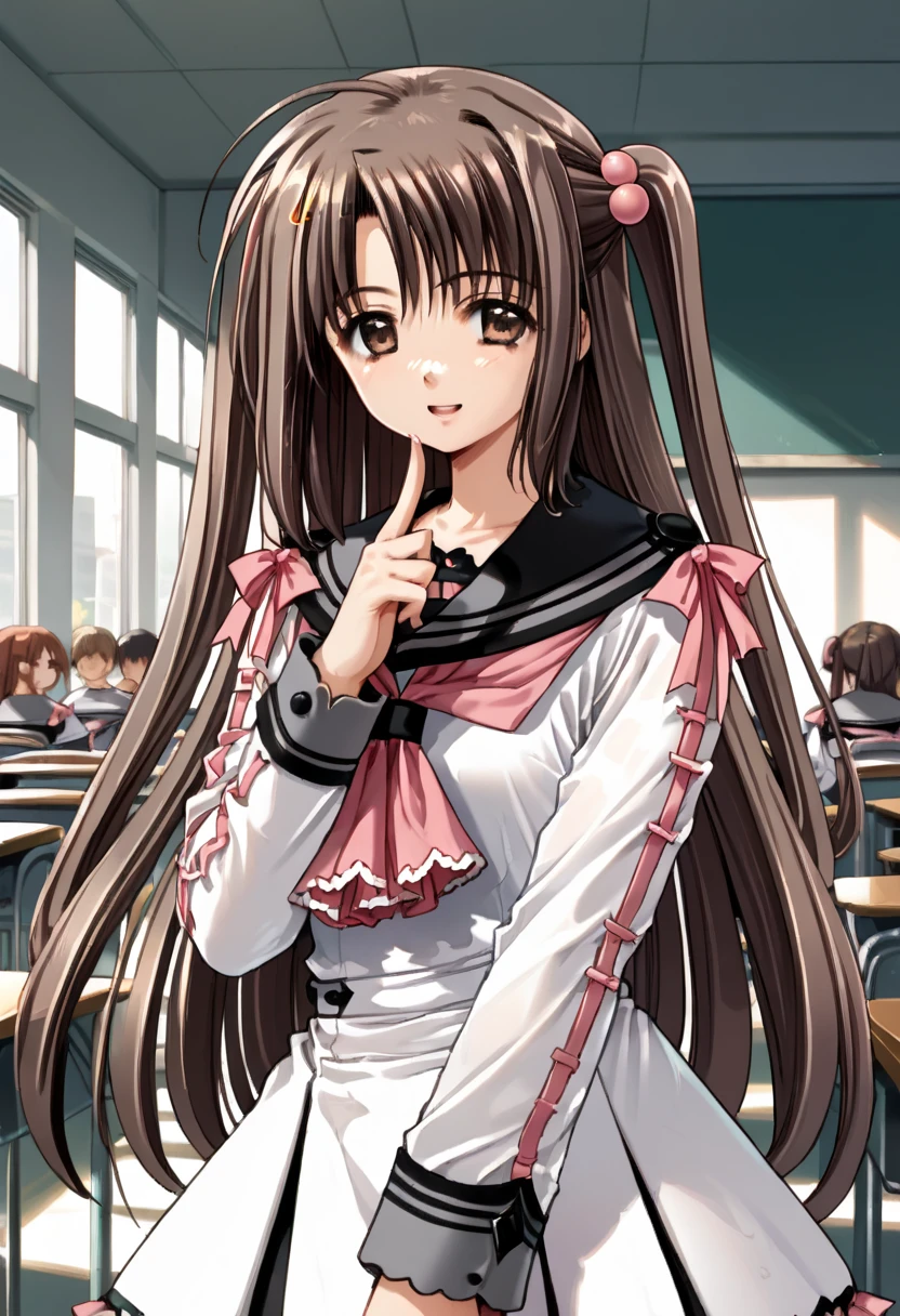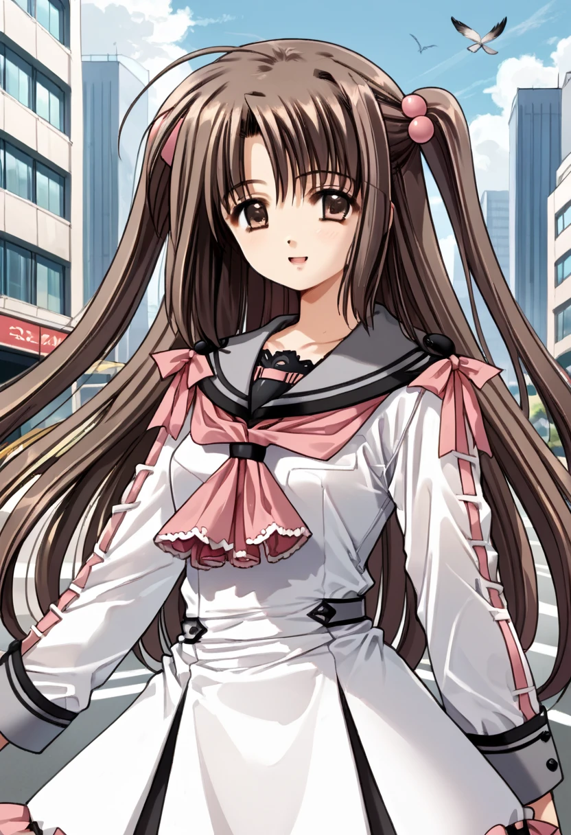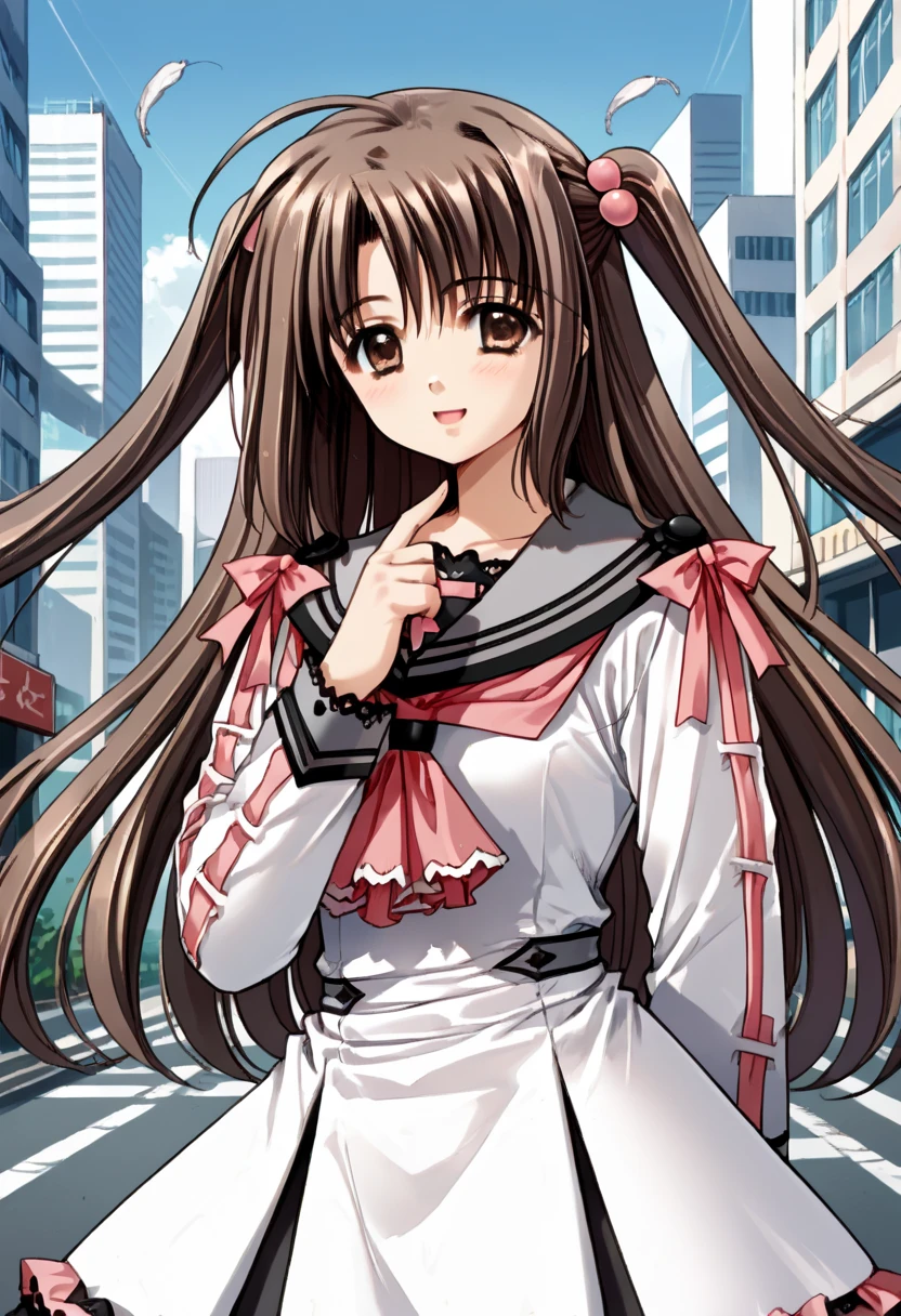 WASUKA,brown hair,brown eyes,straight hair,two side up,ahoge,long hair