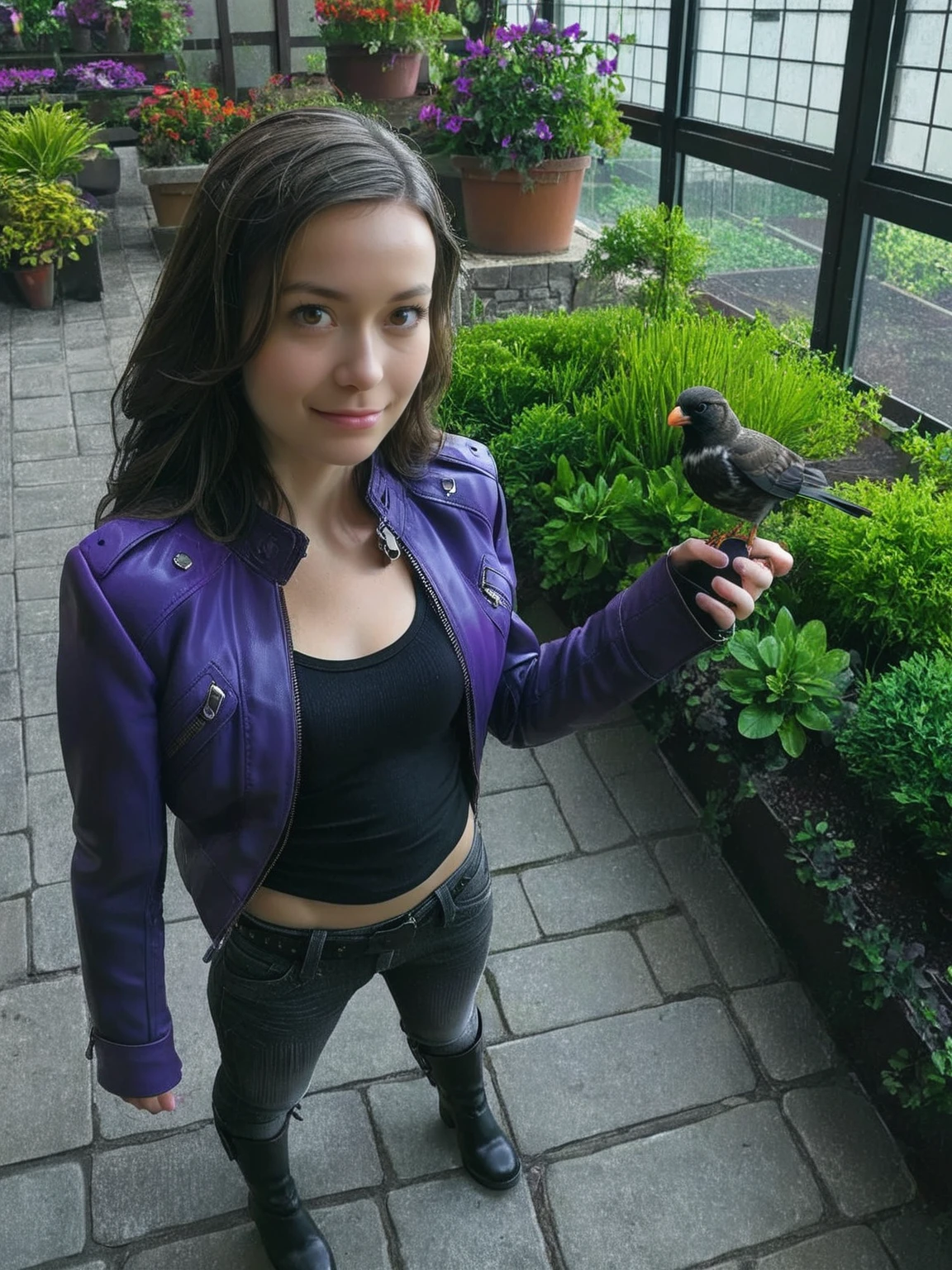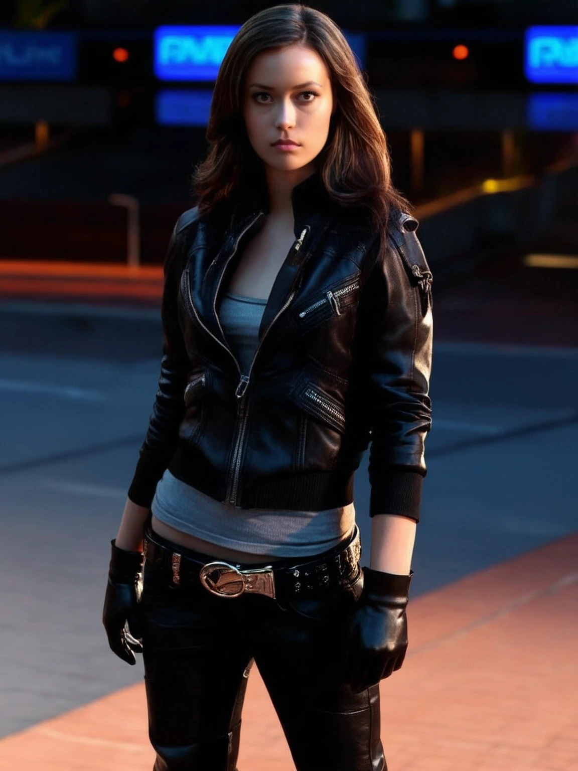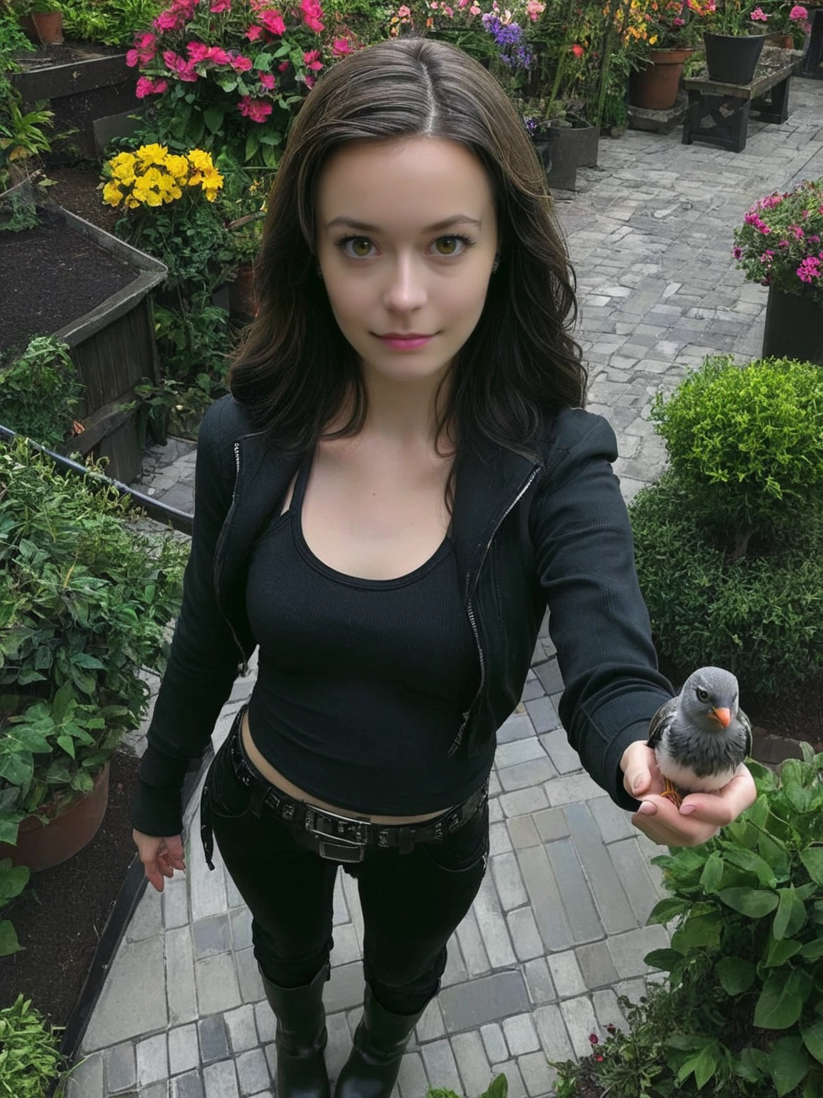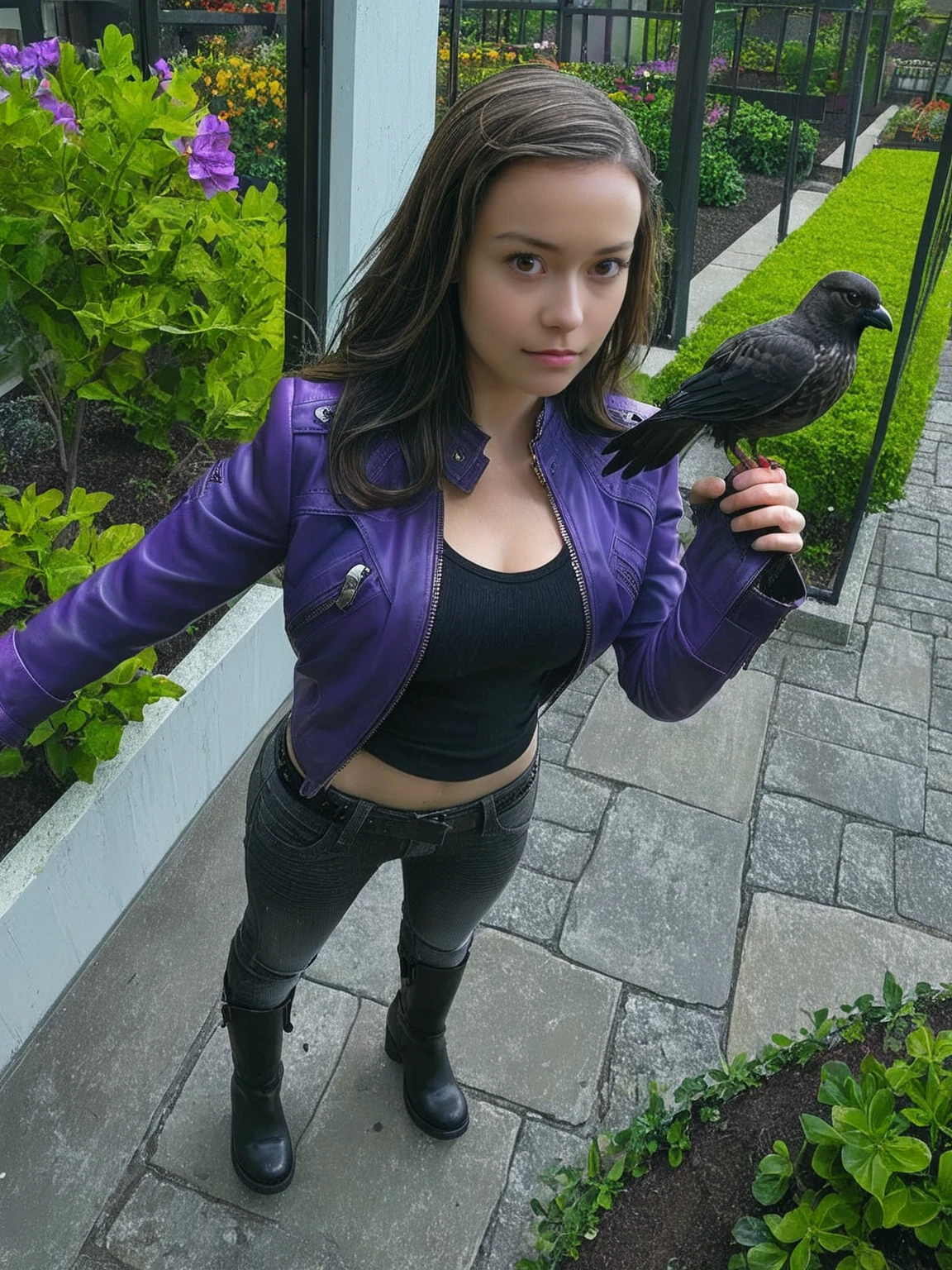 • crop jacket, tight jacket, tank top,medium skirt, boots
