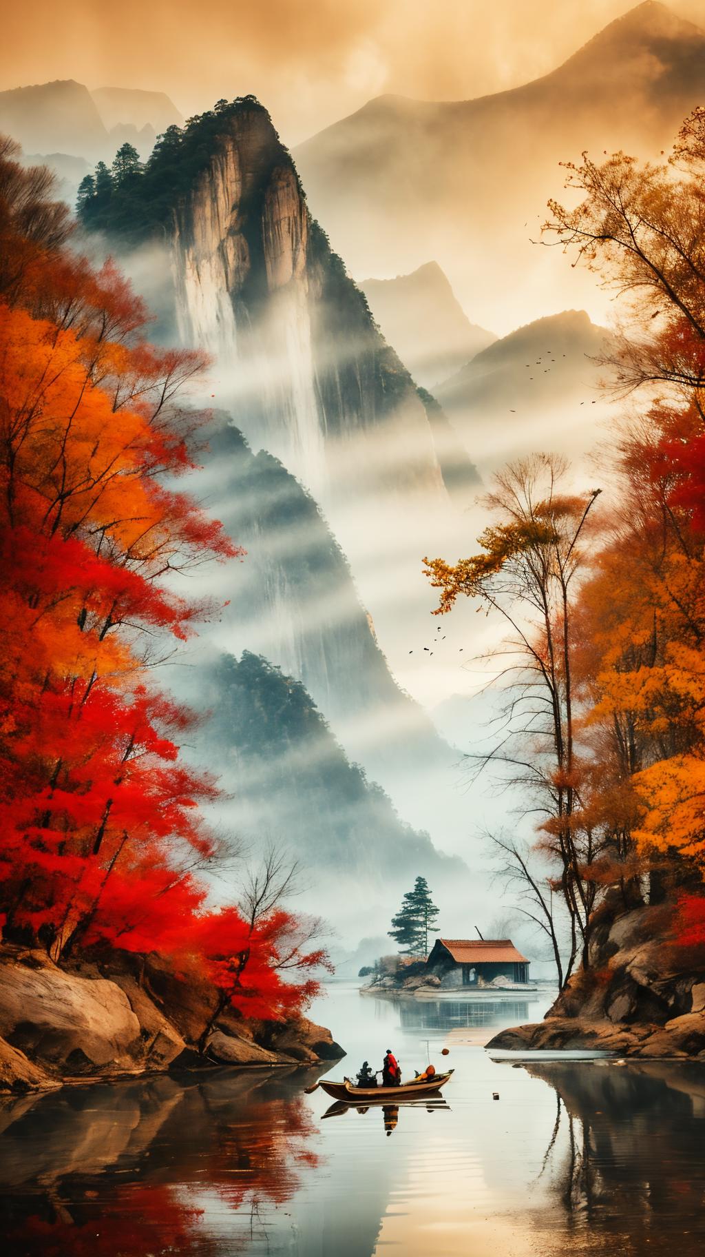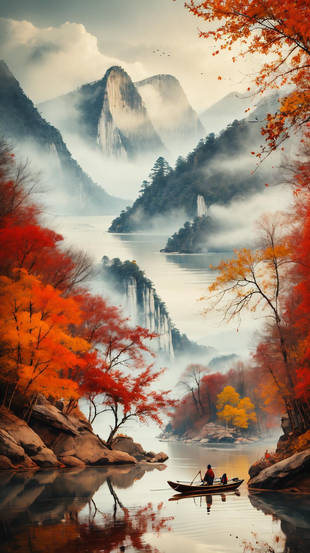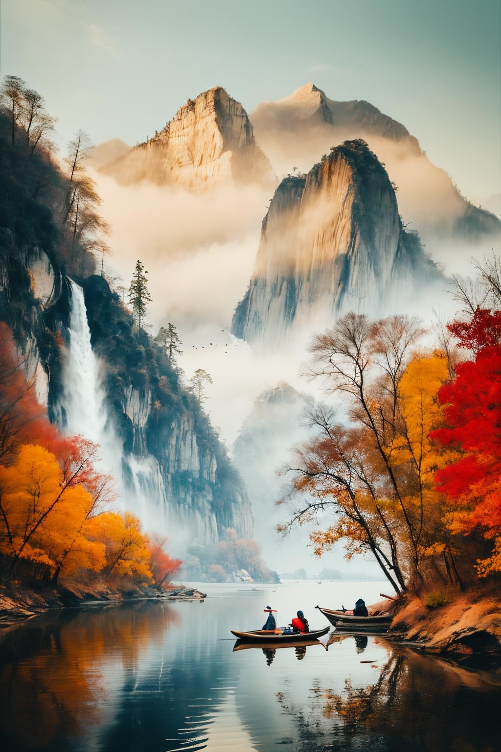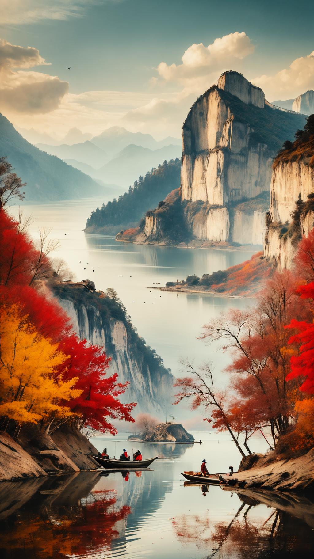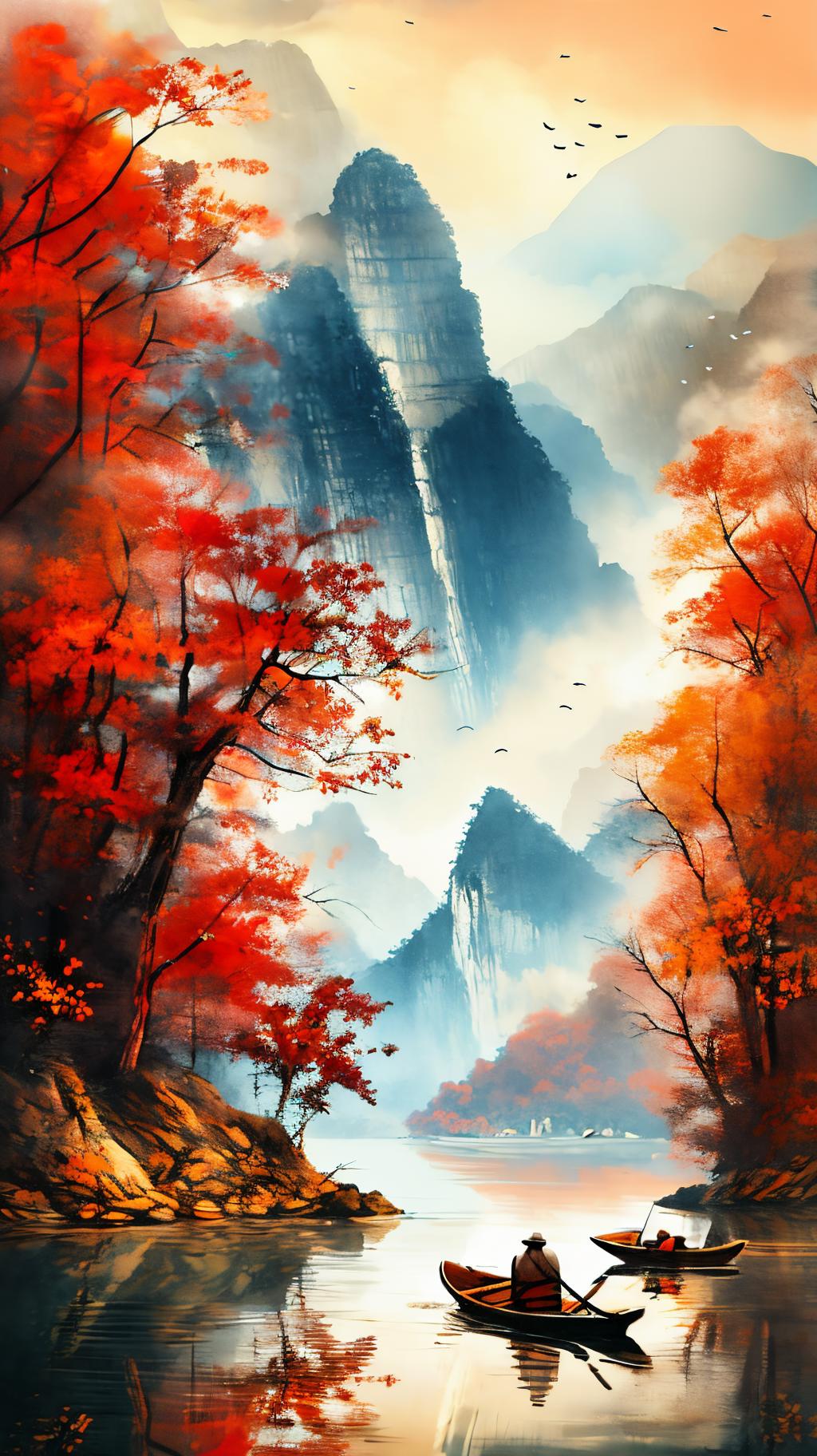 <lora:1.5:0.9>,shan,watercraf11t,boat,bird,tree,scenery,water,lake,mountain,outdoors,reflection,nature,river,