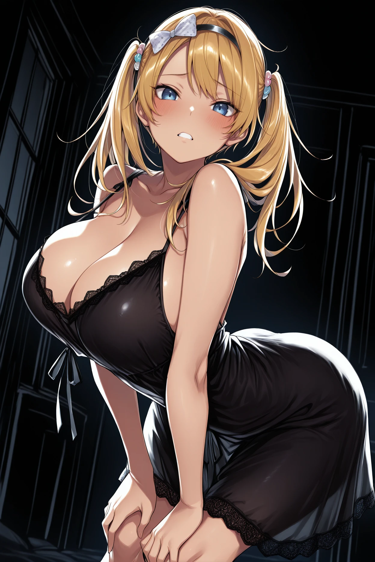 ymybi, blonde hair, twintails, long hair, blue eyes, big breasts