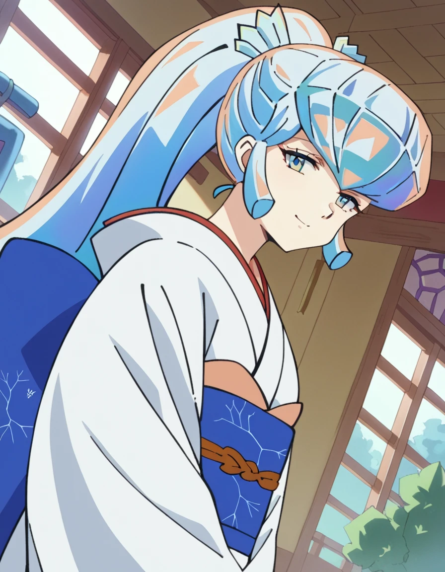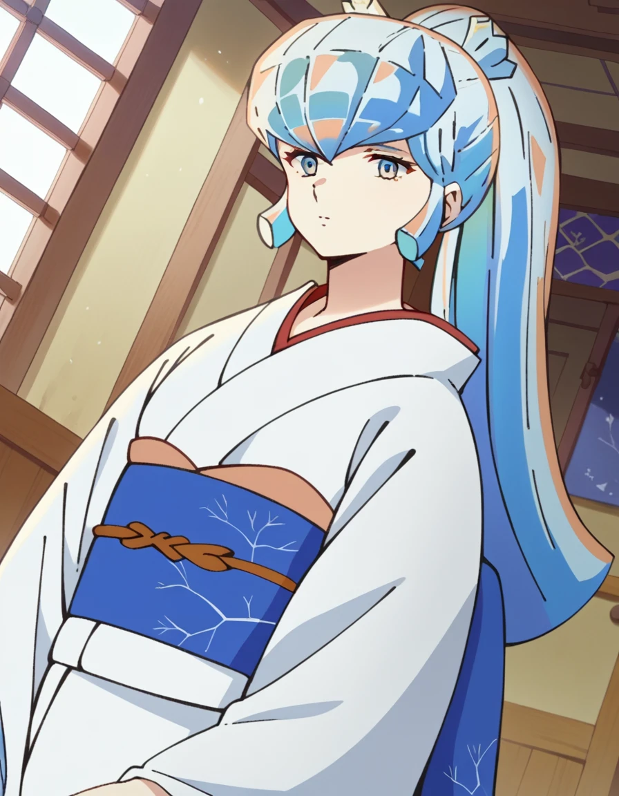 oyuki, long hair, blue eyes, blue hair, ponytail,