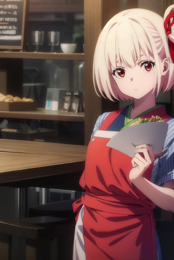 Working Uniform: japanese clothes, kimono, apron, red ribbon, waitress, red kimono,