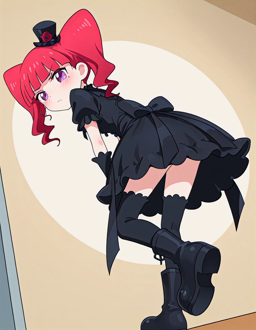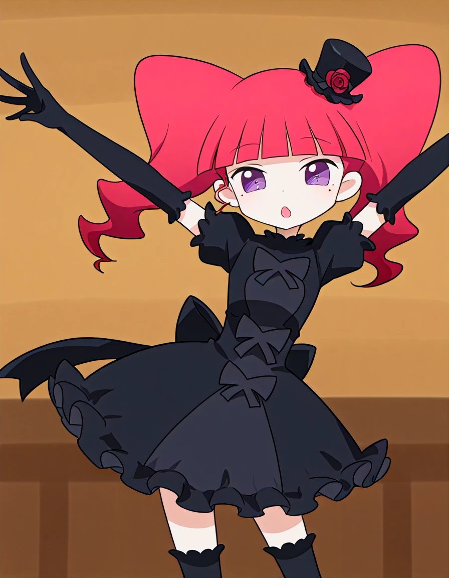 trigger words: marika, deformed, mini hat, mole under eye, black dress, elbow gloves, thighhighs, boots