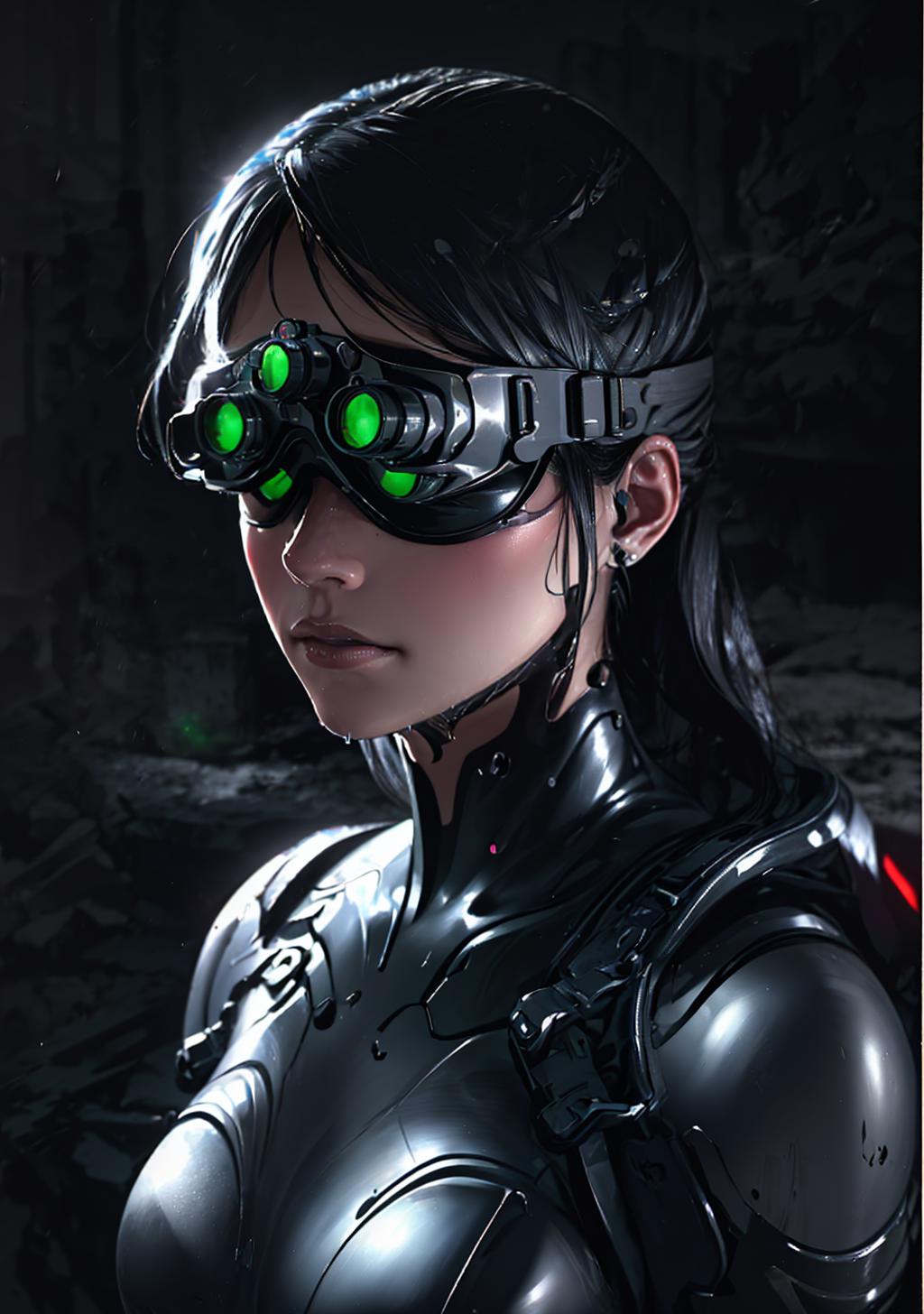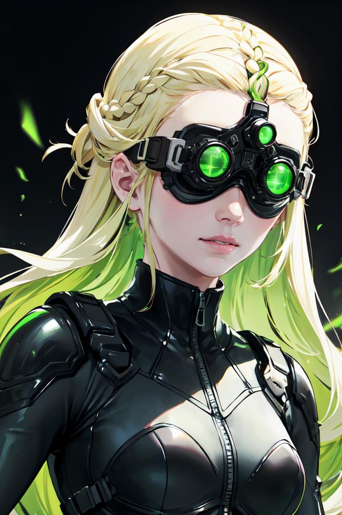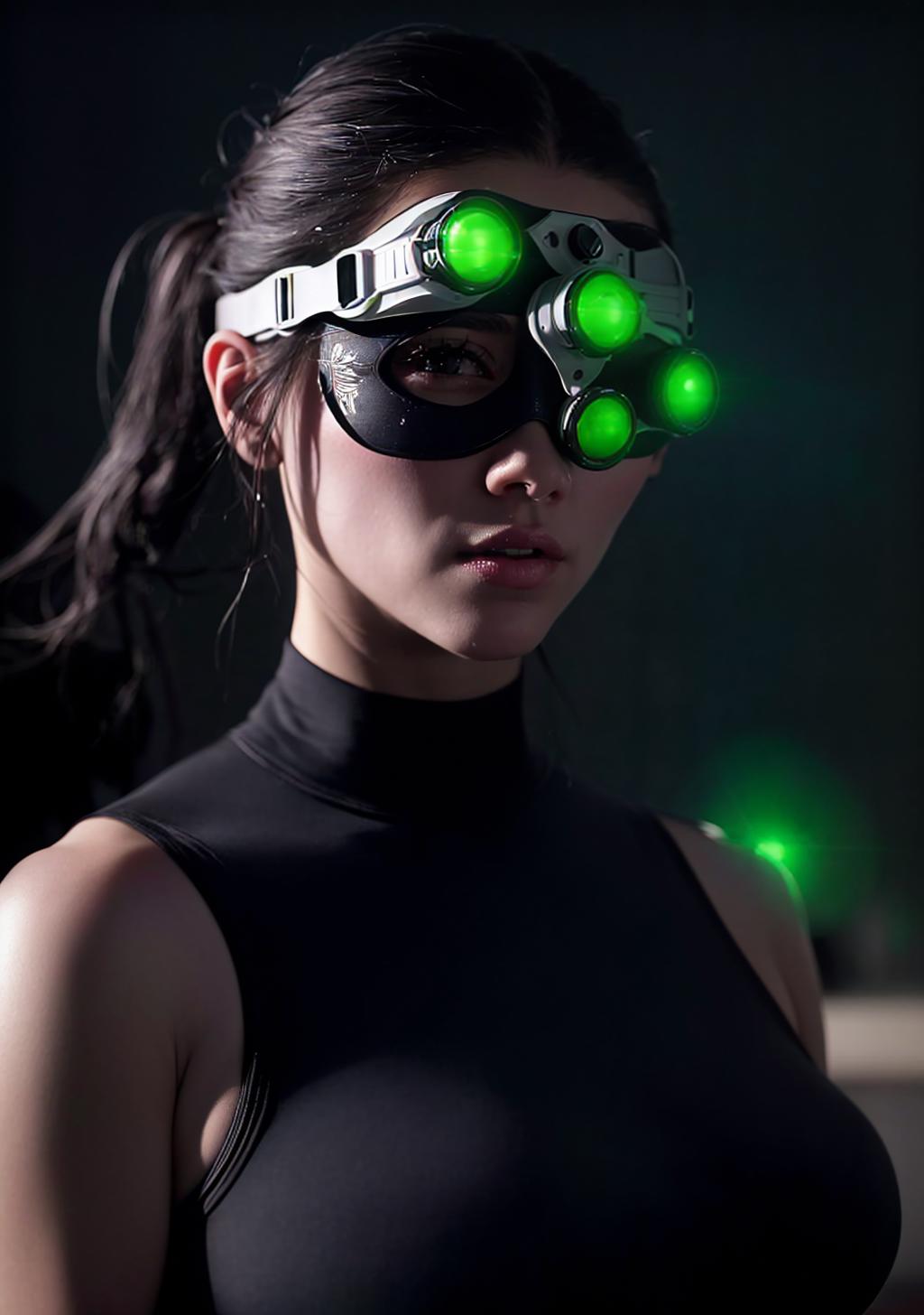 On this Lora I wanted to more or less reproduce the Splinter Cell night vision glasses. It takes several tries before you get good results.Useful prompt : goggles on head, goggles, green eyes, glowing, glowing eyes