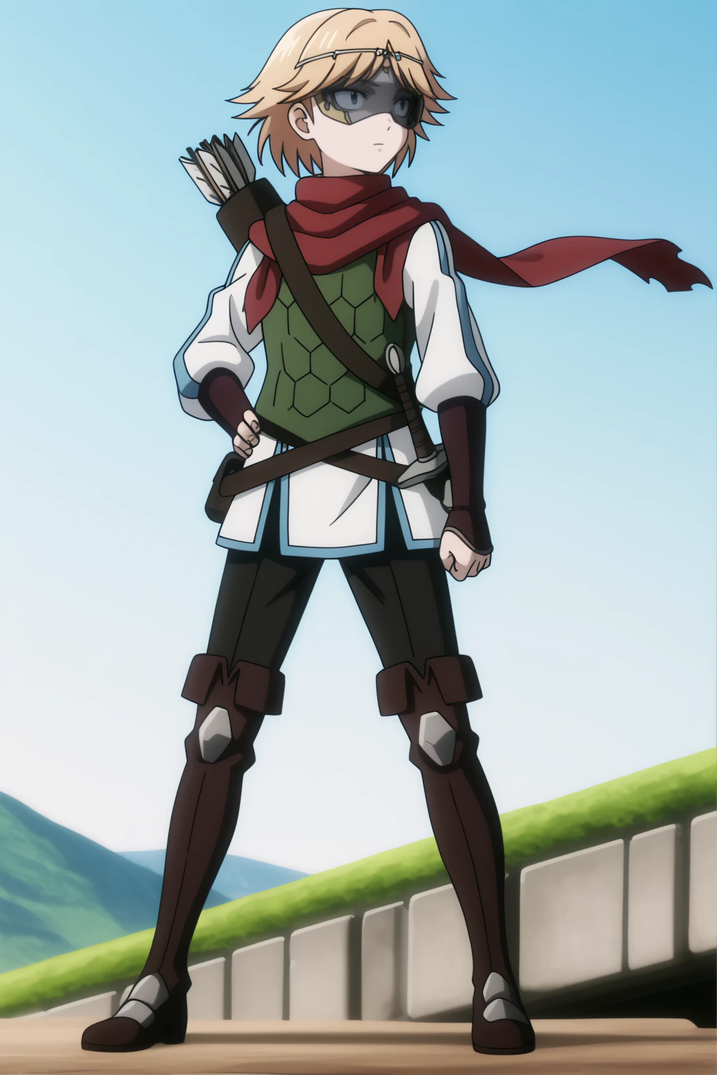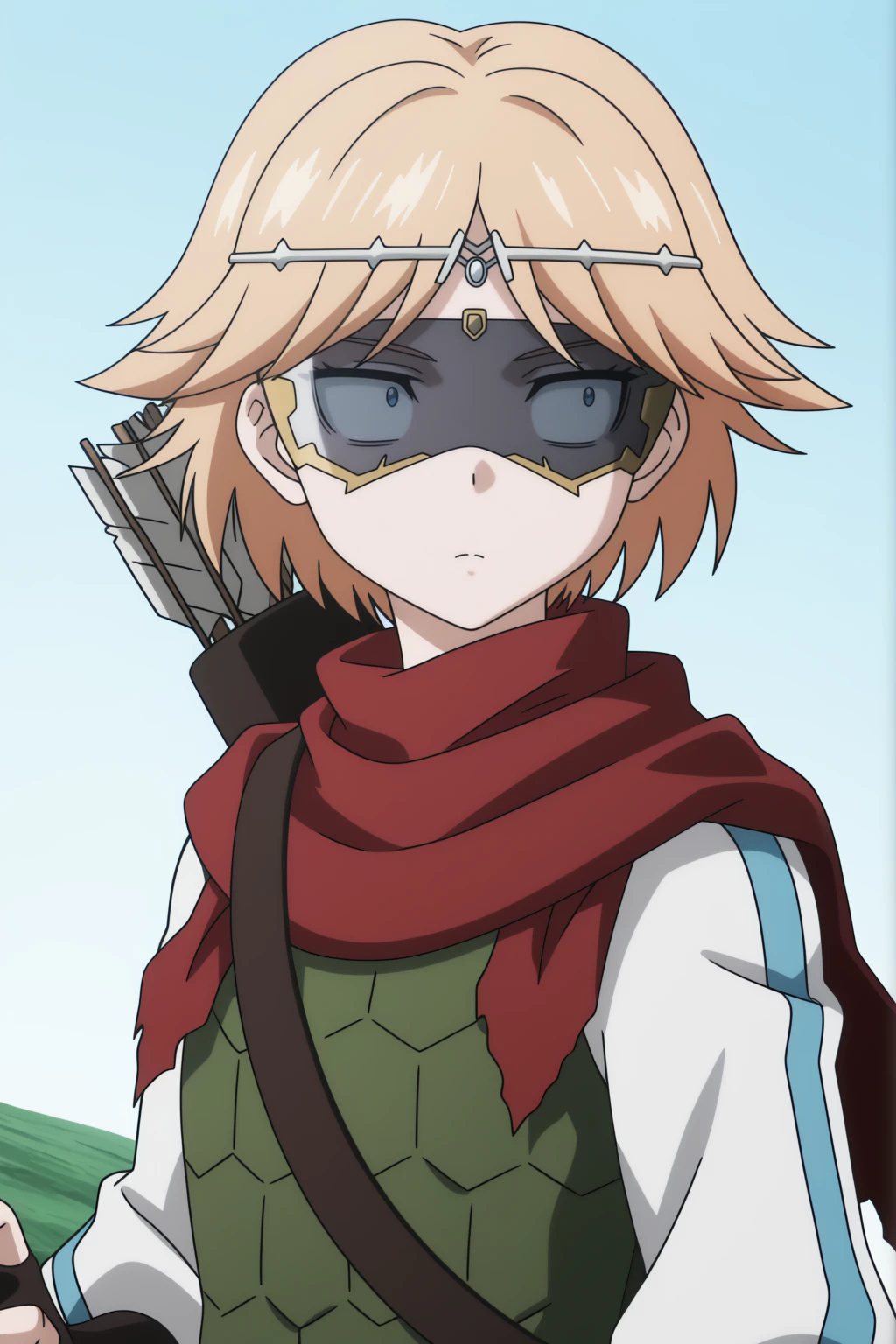 bow, visor, circlet, dragon vest