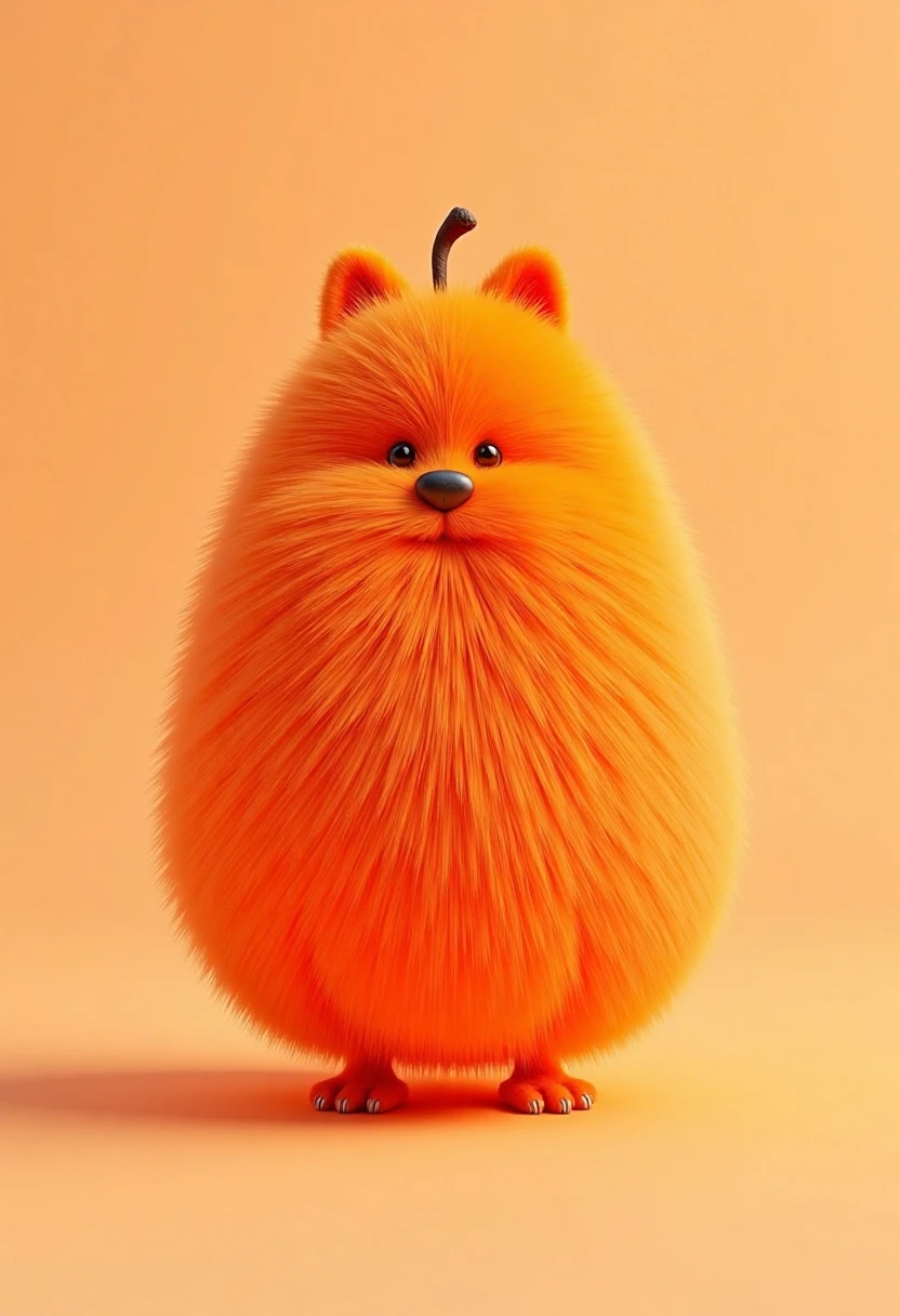 Fluffy texture, furry orange form, bright color, simple space, digital art, soft shadows, fun appearance.