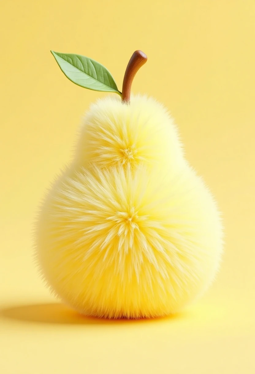 Fluffy texture, woolly pear shape, yellow shade, clear background, 3D illustration, gentle light, fresh look.