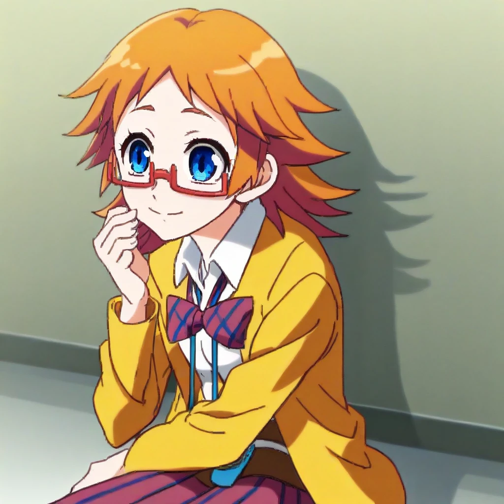 akemi_mikan, orange hair, blue eyes, glasses, school uniform, jacket