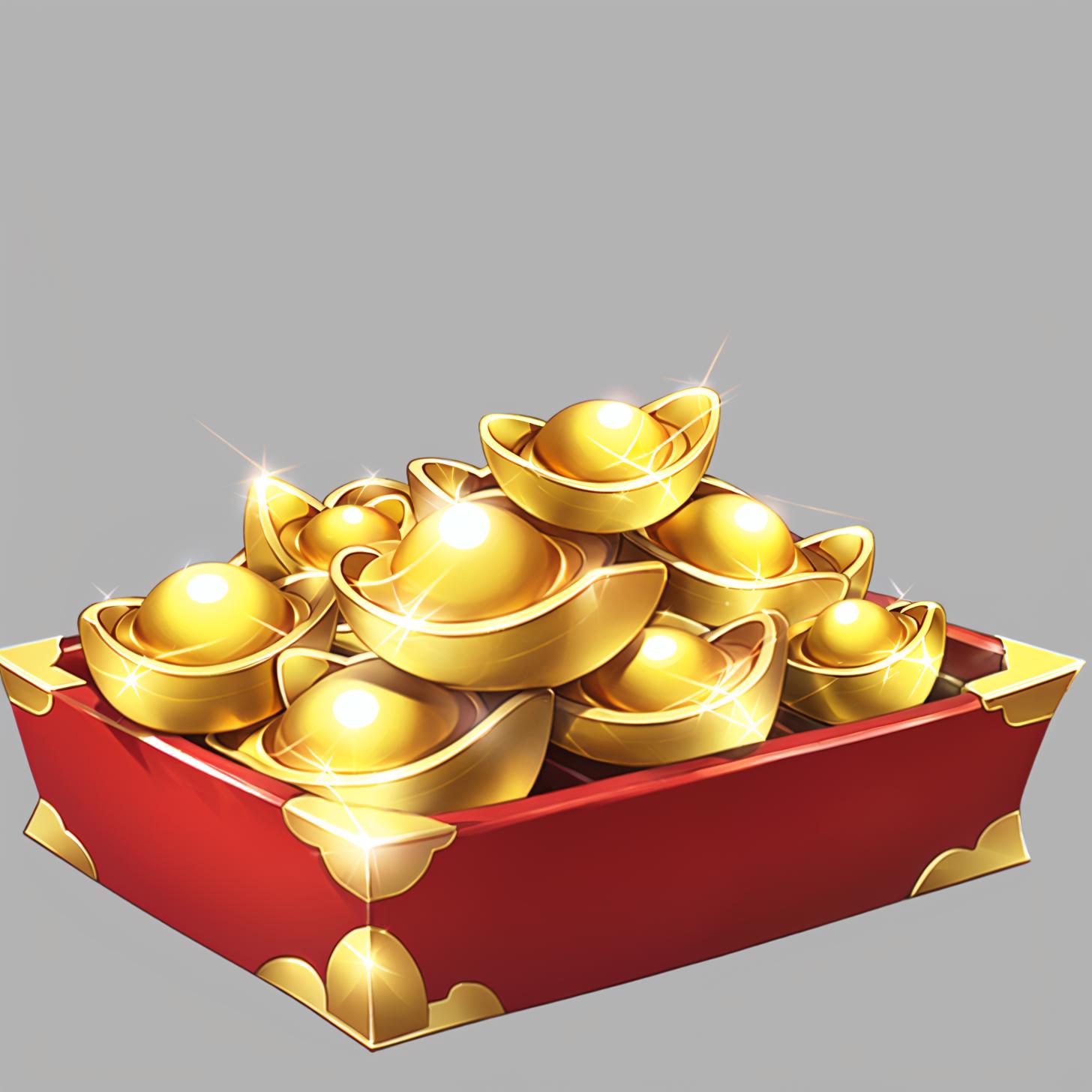 这是一个游戏货币lora模型可生成三种资源,金币,金块,金元宝