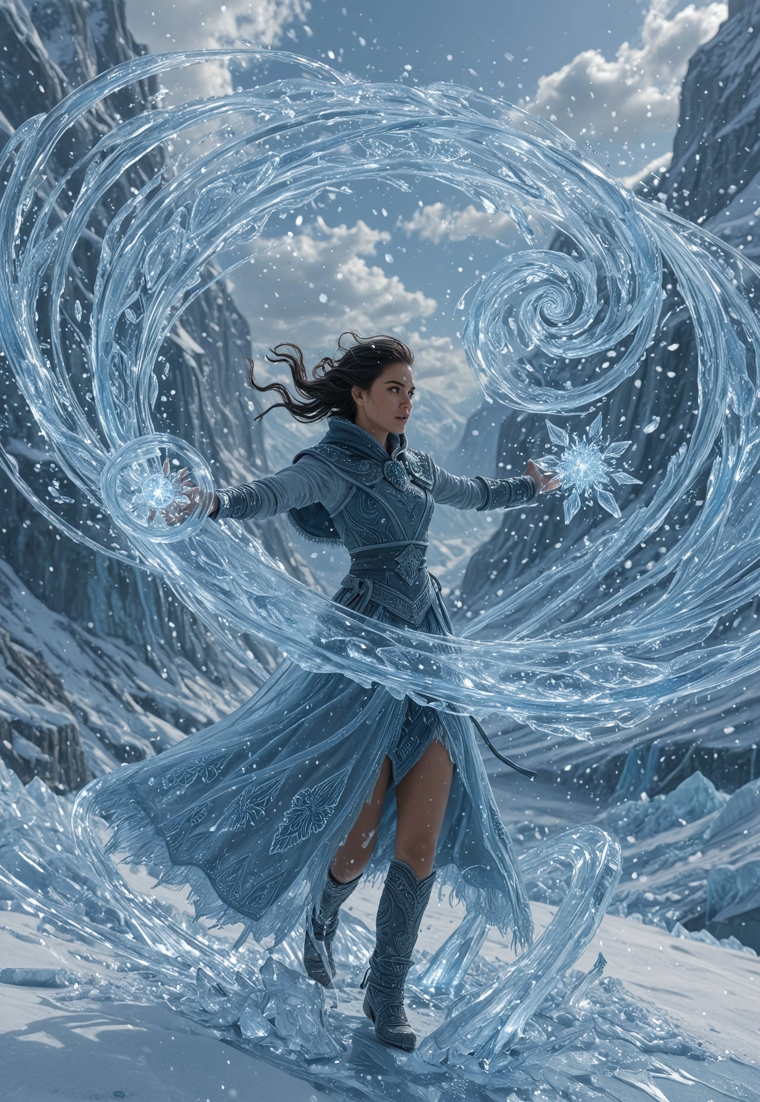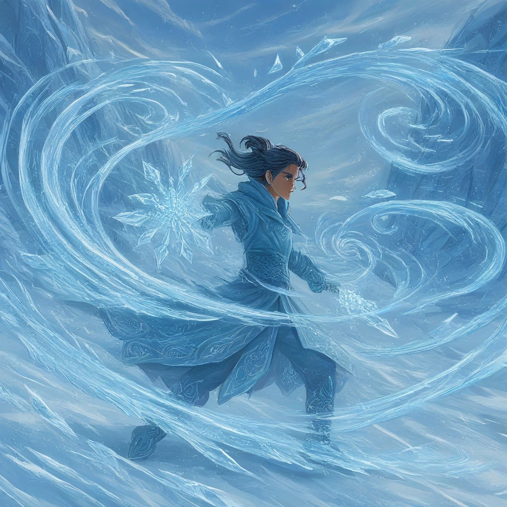 Icemagmb2, casting ice magic, swirling frost rings, glowing ice patterns, cold energy aura, ice particles,