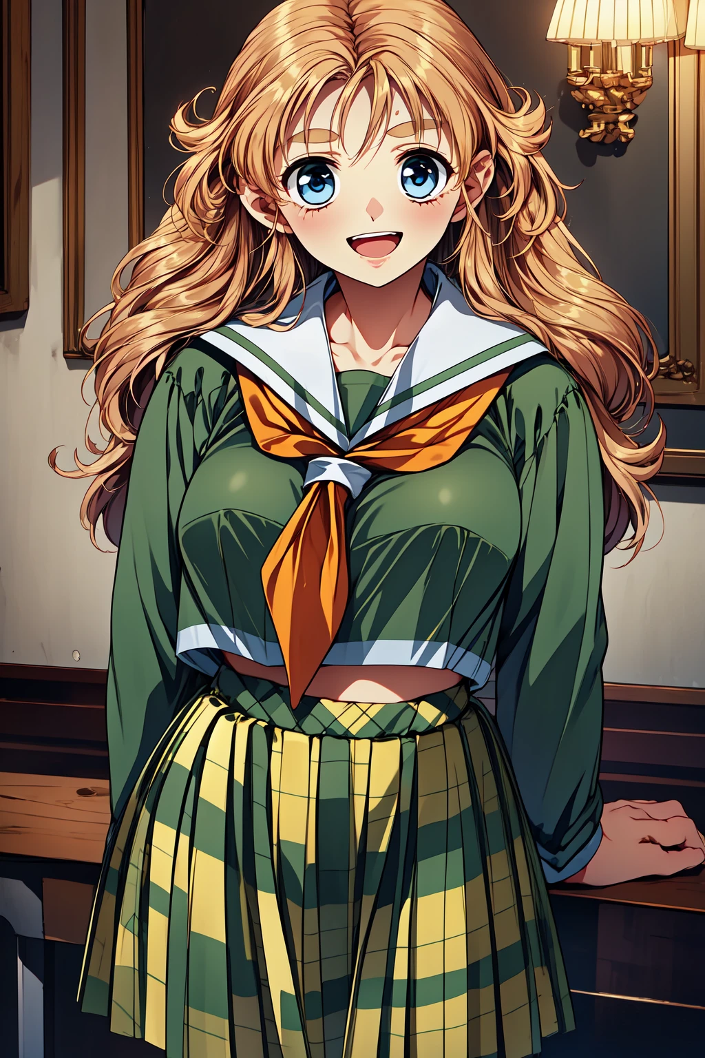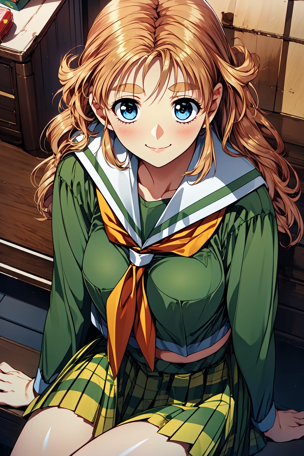 costume: school uniform, serafuku, neckerchief, plaid skirt,
