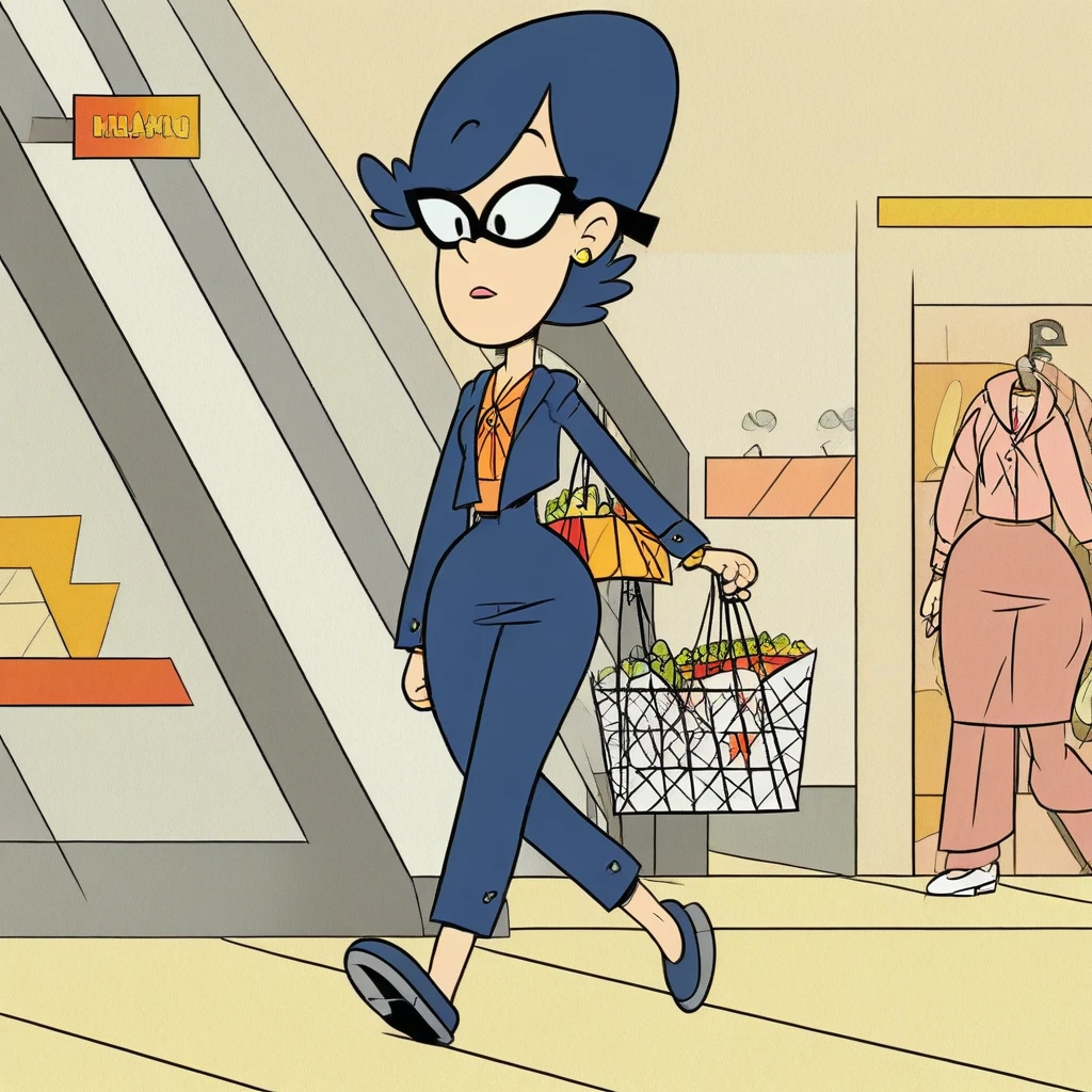 navy suit jacket, navy pencil skirt, formal, orange dress shirt, white high heels,