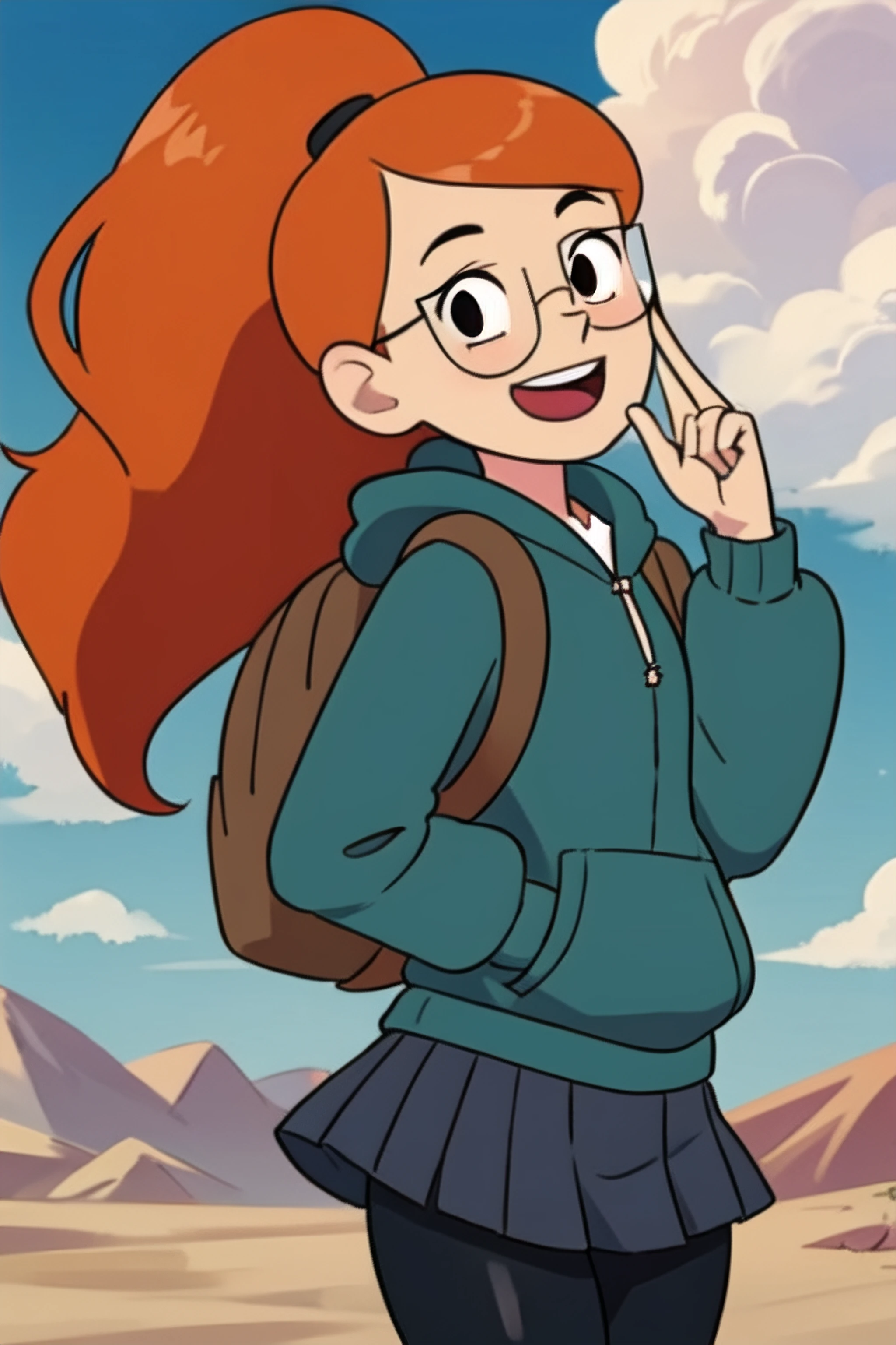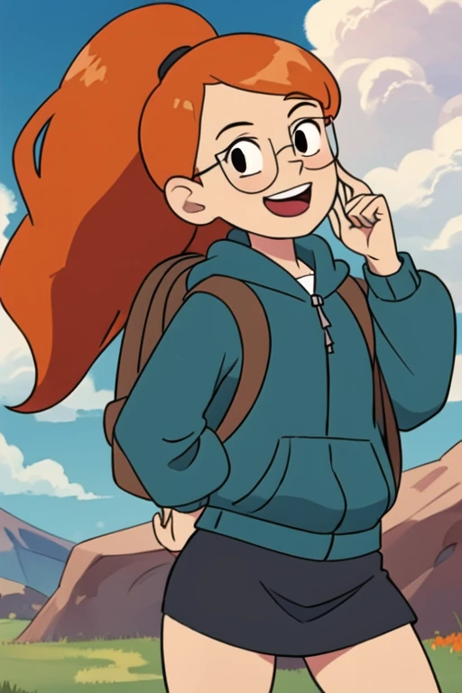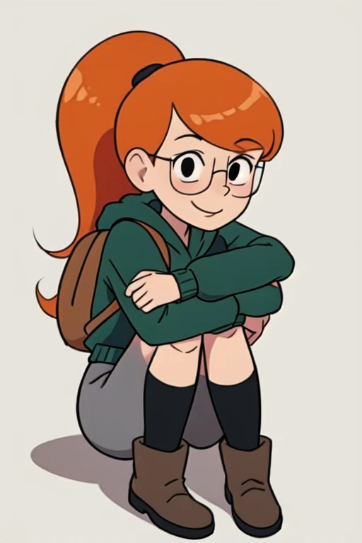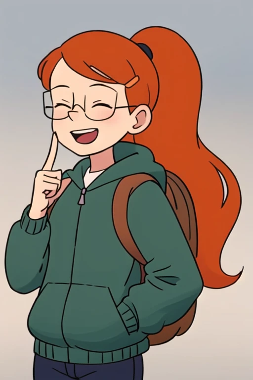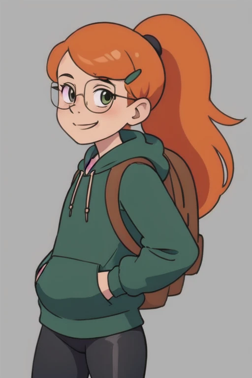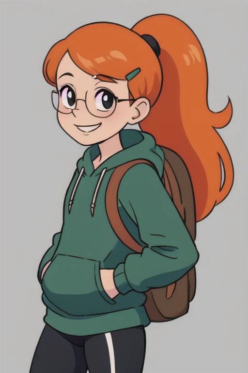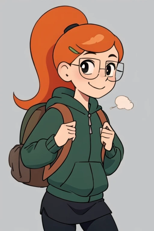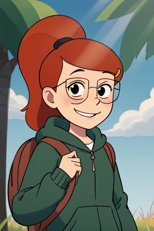 tulip 1girl, solo, orange hair, ponytail, green hoodie, glasses